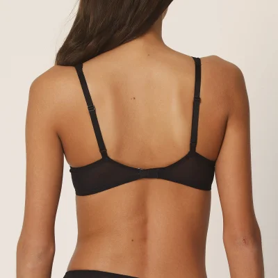 Auch ein T-Shirt-BH darf seine frivole Seite zeigen ... Bei diesem verführerischen Außenträger mit glatten, unterlegten Cups sorgen Spitzendetails und Träger für Sex-appeal. Schwarz ist ein Must-have in der Lingeriekommode. Bei Erika wird der klassische Dessouston mit viel schwarzer Spitze umgesetzt.