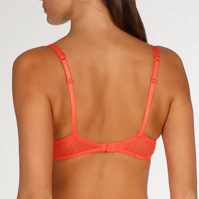 Verführerisch tief ausgeschnitten, mit glatten, unterlegten Cups, als Zierelemente ein Bändchen mit Wabenmuster und ein Hauch Spitze: Dieser BH zeigt, worauf es ankommt. Pamplemousse bringt Kontrast zu Ihrem Hautton.