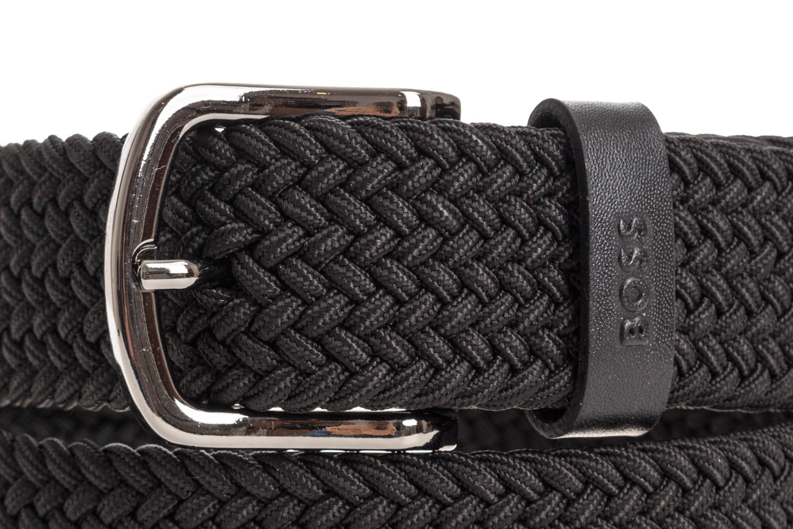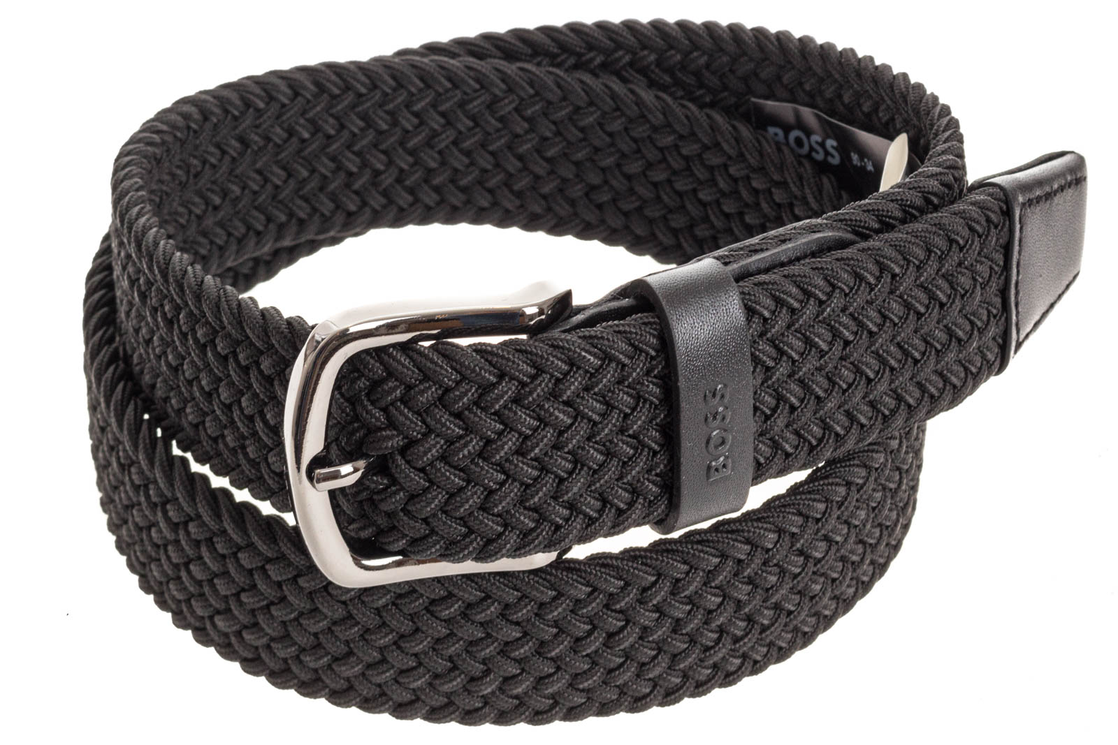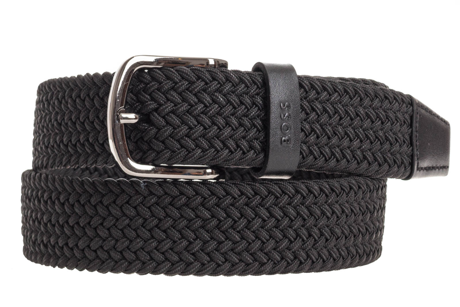 Made in Italy: Das 3,0 Zentimeter breite BOSS Accessoire ist mit einer polierten silberfarbenen Dornschließe versehen. Lederbesätze verleihen dem Style aus einem gewebten, elastischen Material-Mix einen edlen Touch.