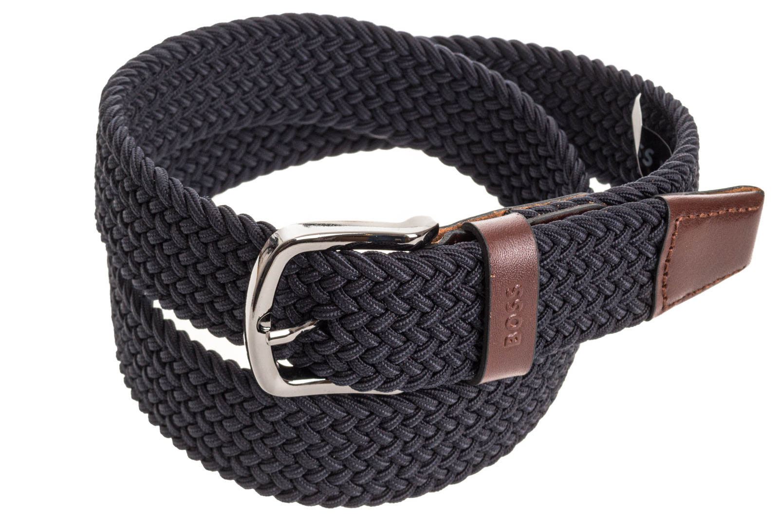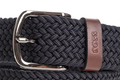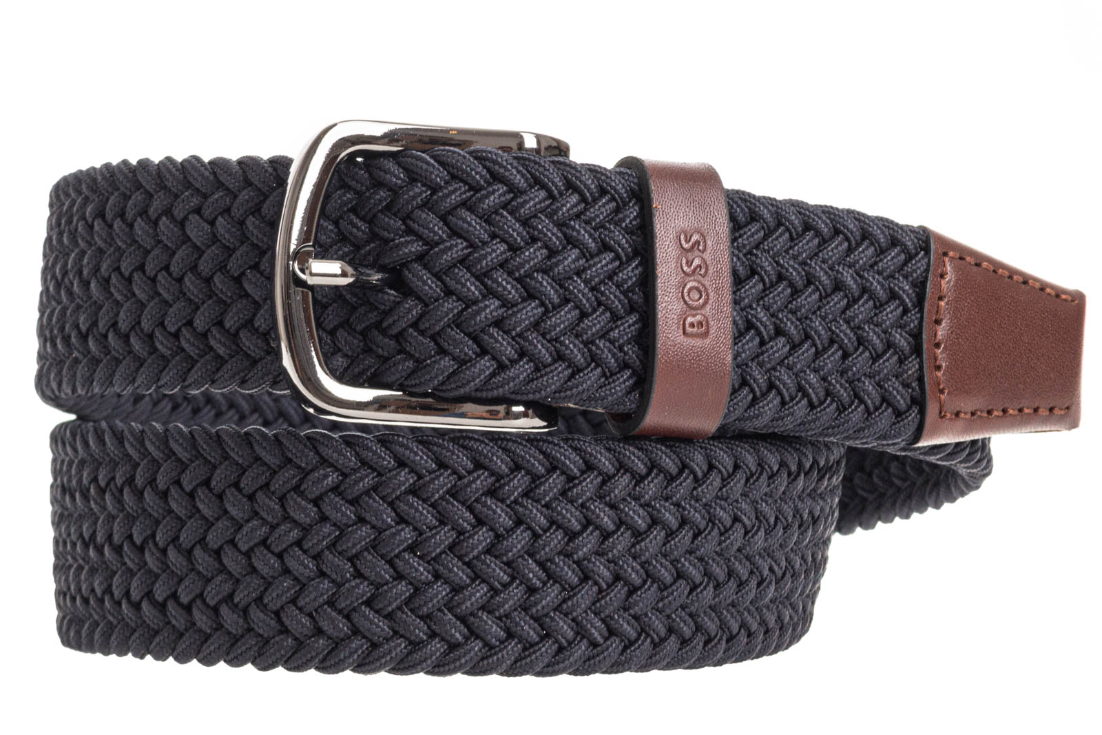 Made in Italy: Das 3,0 Zentimeter breite BOSS Accessoire ist mit einer polierten silberfarbenen Dornschließe versehen. Lederbesätze verleihen dem Style aus einem gewebten, elastischen Material-Mix einen edlen Touch.