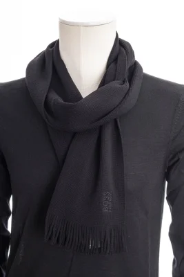 Klassischer Schal mit gesticktem BOSS-Logo und Fransen.