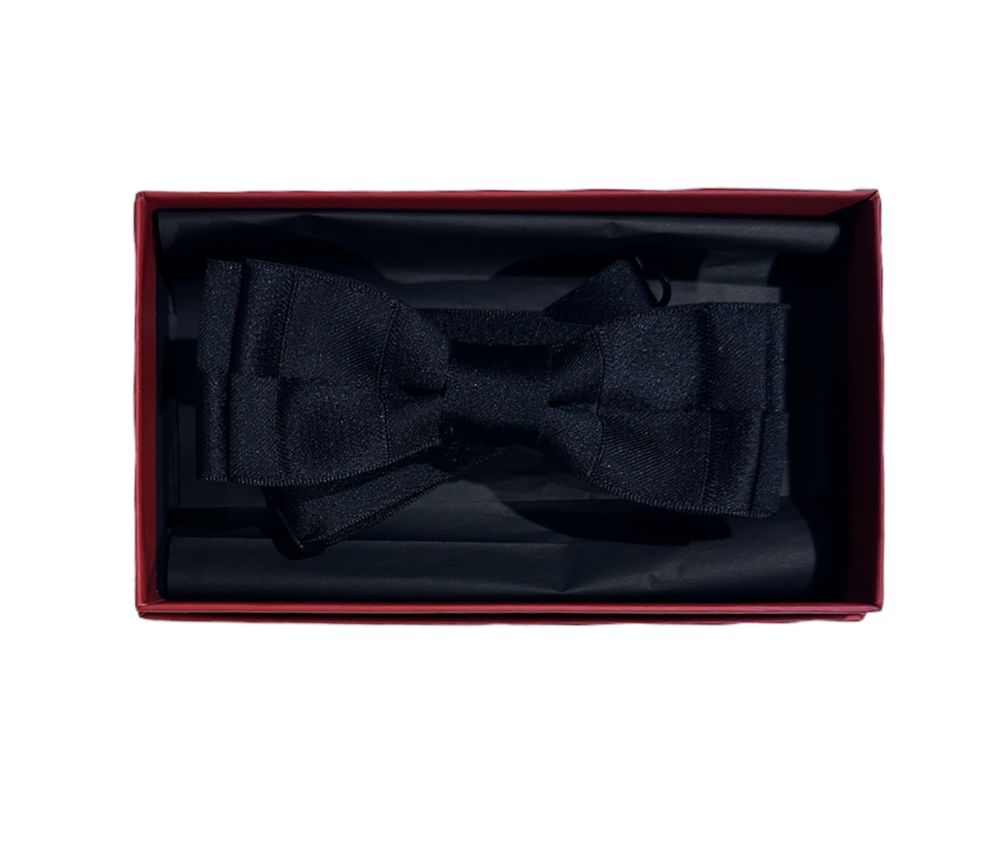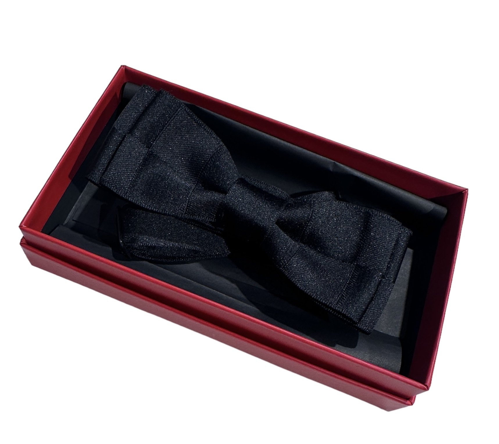 Modisch schmale Schleife mit Riegel zum Einstellen der Kragenweite.