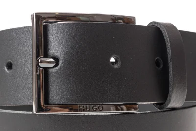 Zeitgemäßer, 3,5 Zentimeter breiter HUGO Gürtel aus gegerbtem italienischem Leder für einen edlen Touch und mit Logo-Prägung auf der Schnalle.