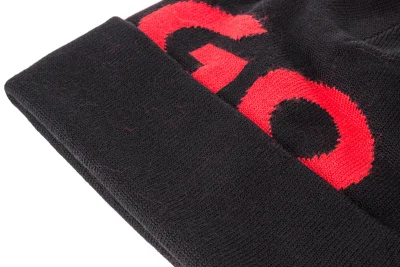 Unisex-Strickmütze mit seitlichem HUGO Schriftzug.