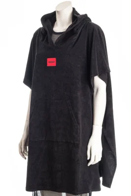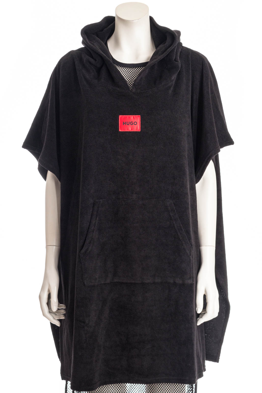 HUGO Poncho mit Kapuze und rotem Logo-Label auf der Brust. Der Strand-Style ist aus einem soften Material-Mix mit Baumwoll-Anteil und Terry-Struktur gefertigt.