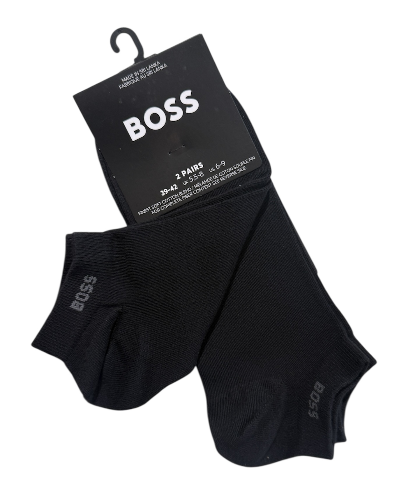 Zwei Paar knöchellange BOSS Socken, die zu Schuhen mit niedrigem Schaft passen. Softer Baumwoll-Mix mit Elasthan-Anteil. Dezentes Branding.