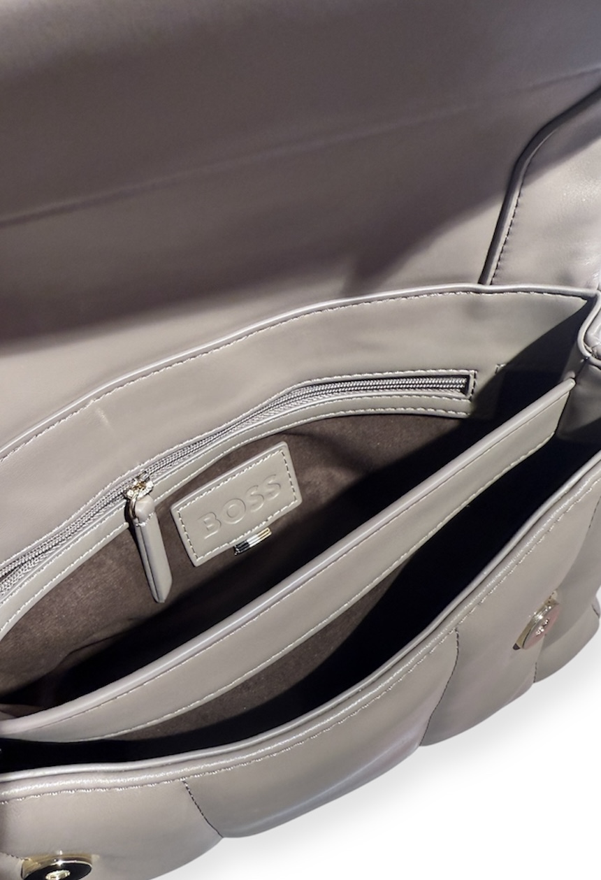 Die BOSS Umhängetasche mit gestepptem Design und Double-B-Monogramm aus Metall ist ein markantes Accessoire. Verstellbarer Kettenriemen. Die Maße: 24,5 x 16,0 x 8,0 Zentimeter.