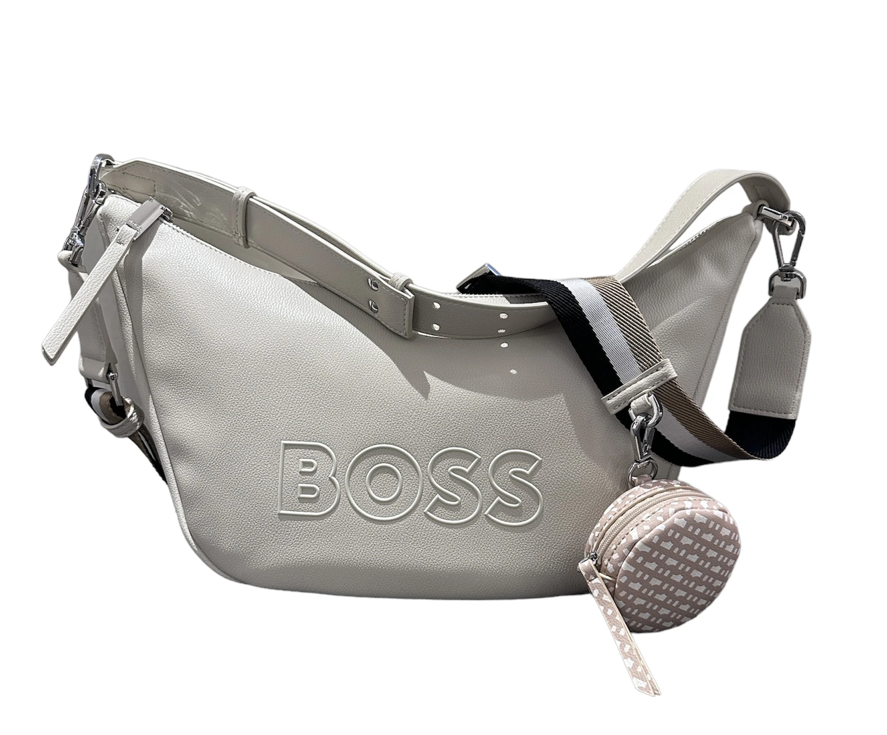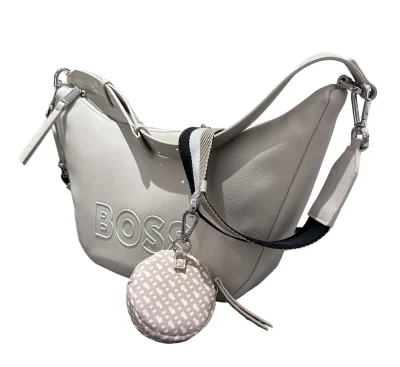BOSS Umhängetasche aus Kunstleder mit tonalem Logo, Signature-Streifen am Riemen und abnehmbarer Geldbörse mit Monogramm-Print.