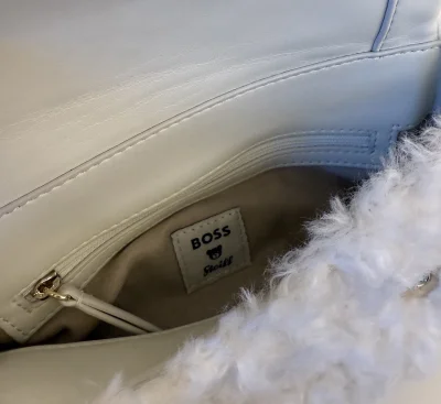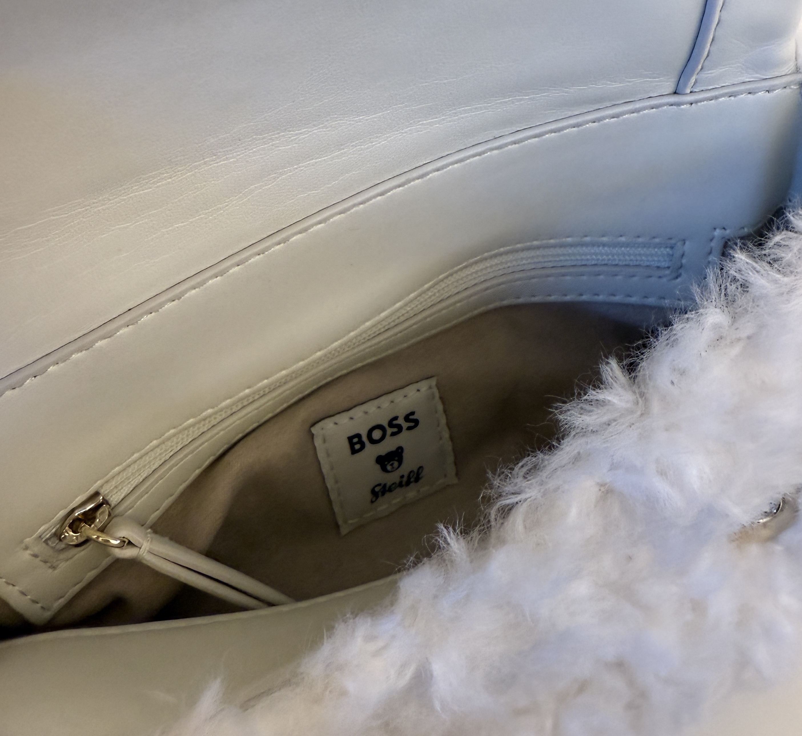 Setzt ein Statement: Die BOSS x Steiff Bag ist von den berühmten flauschigen Teddybären von Steiff inspiriert. Sie ist aus weichem Teddy-Gewebe mit Woll-Anteil gefertigt und hat ein goldfarbenes Logo und einen doppelten Kettenriemen für vielseitige, komfortable Tragemöglichkeiten.