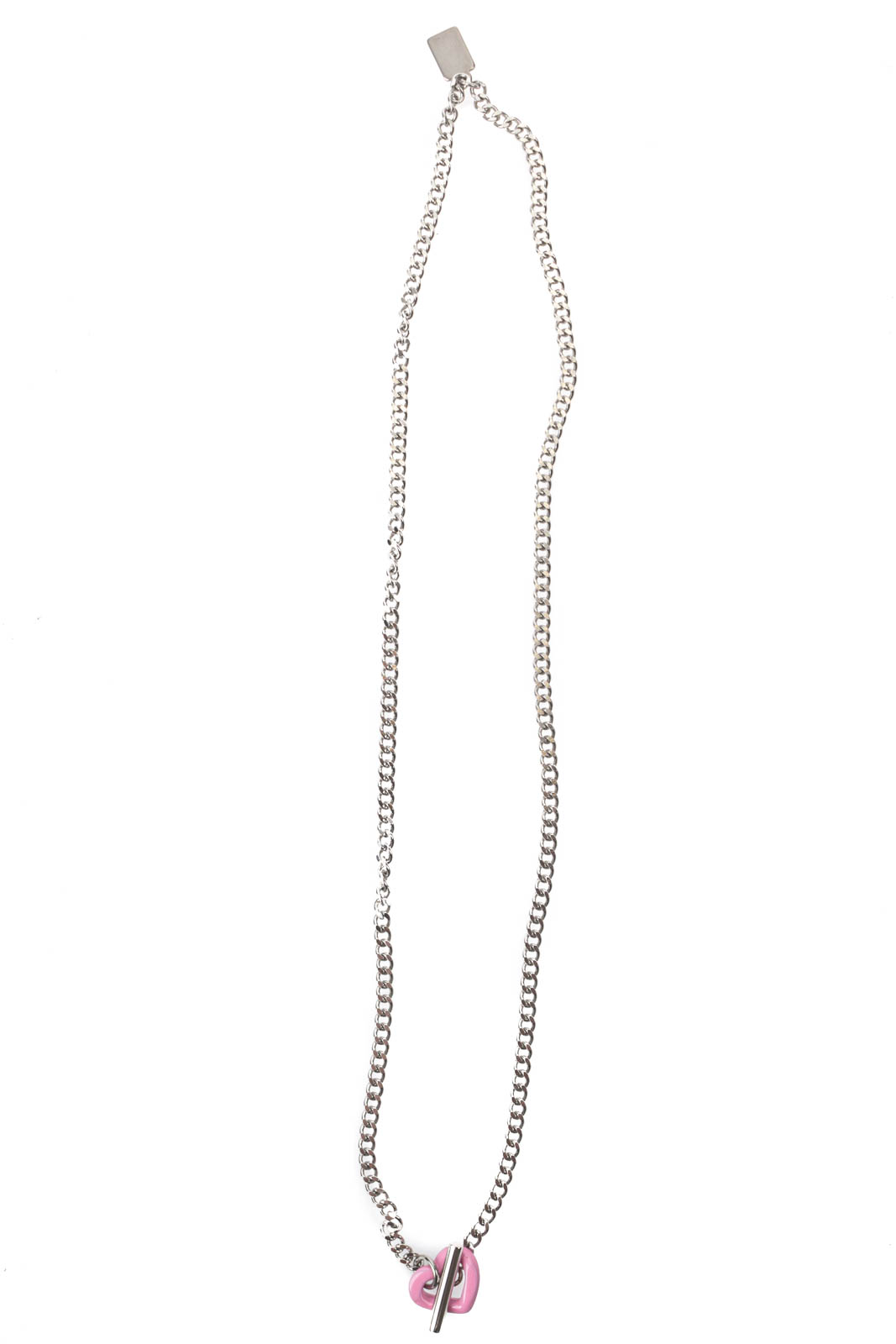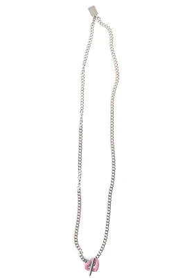 Kleine silberfarbene Kette mit rosa Herz-Anhänger.