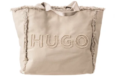 Zeitgemäße HUGO Tote Bag. Das Accessoire ist aus einem soften Material-Mix mit Canvas-Haptik gefertigt. Gefranste Details, darunter ein Outline-Logo, runden das Design ab.