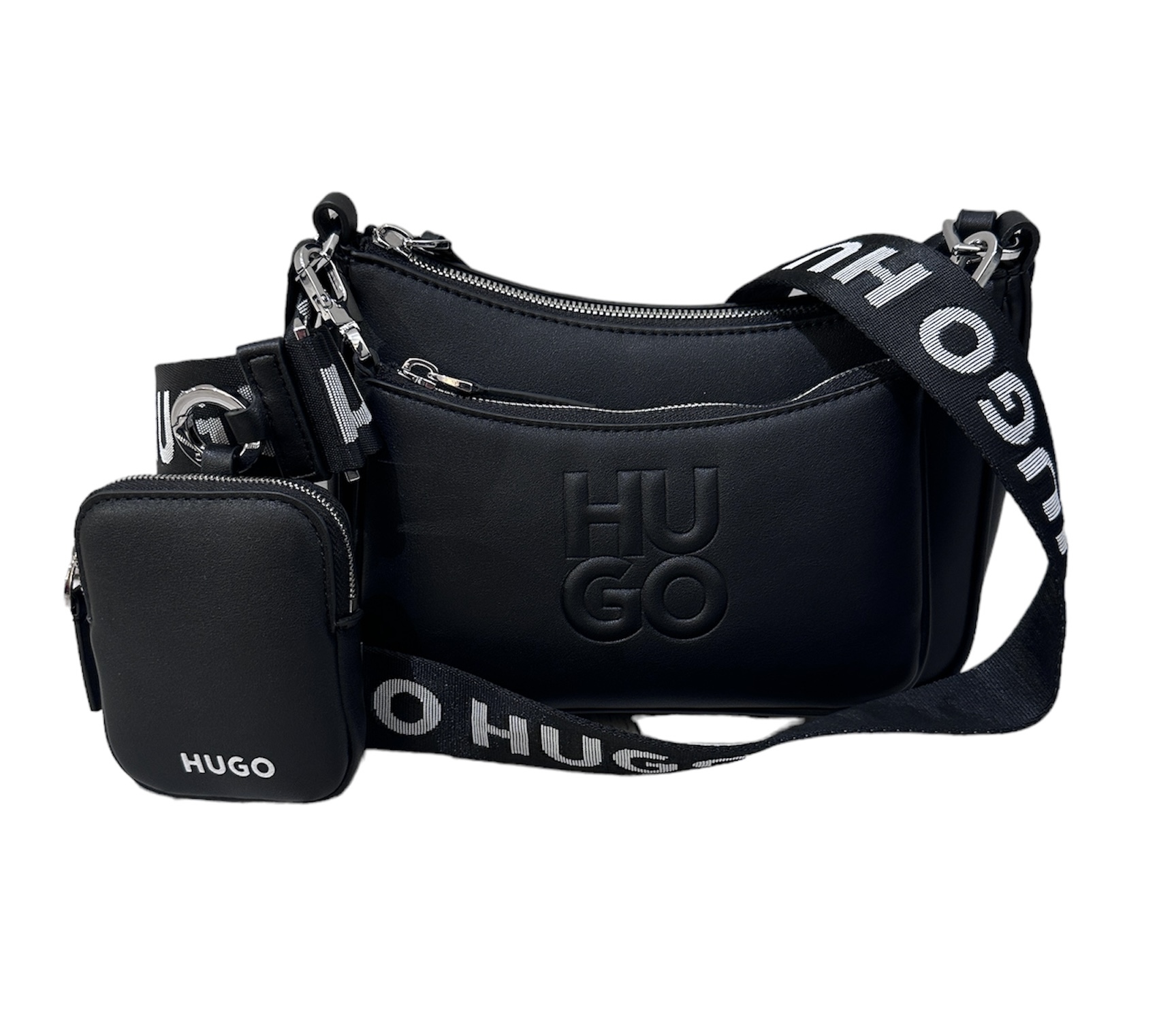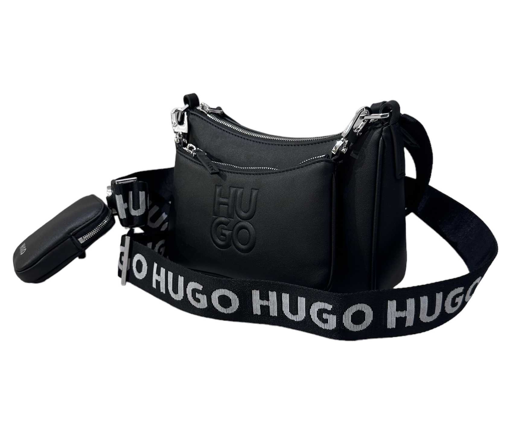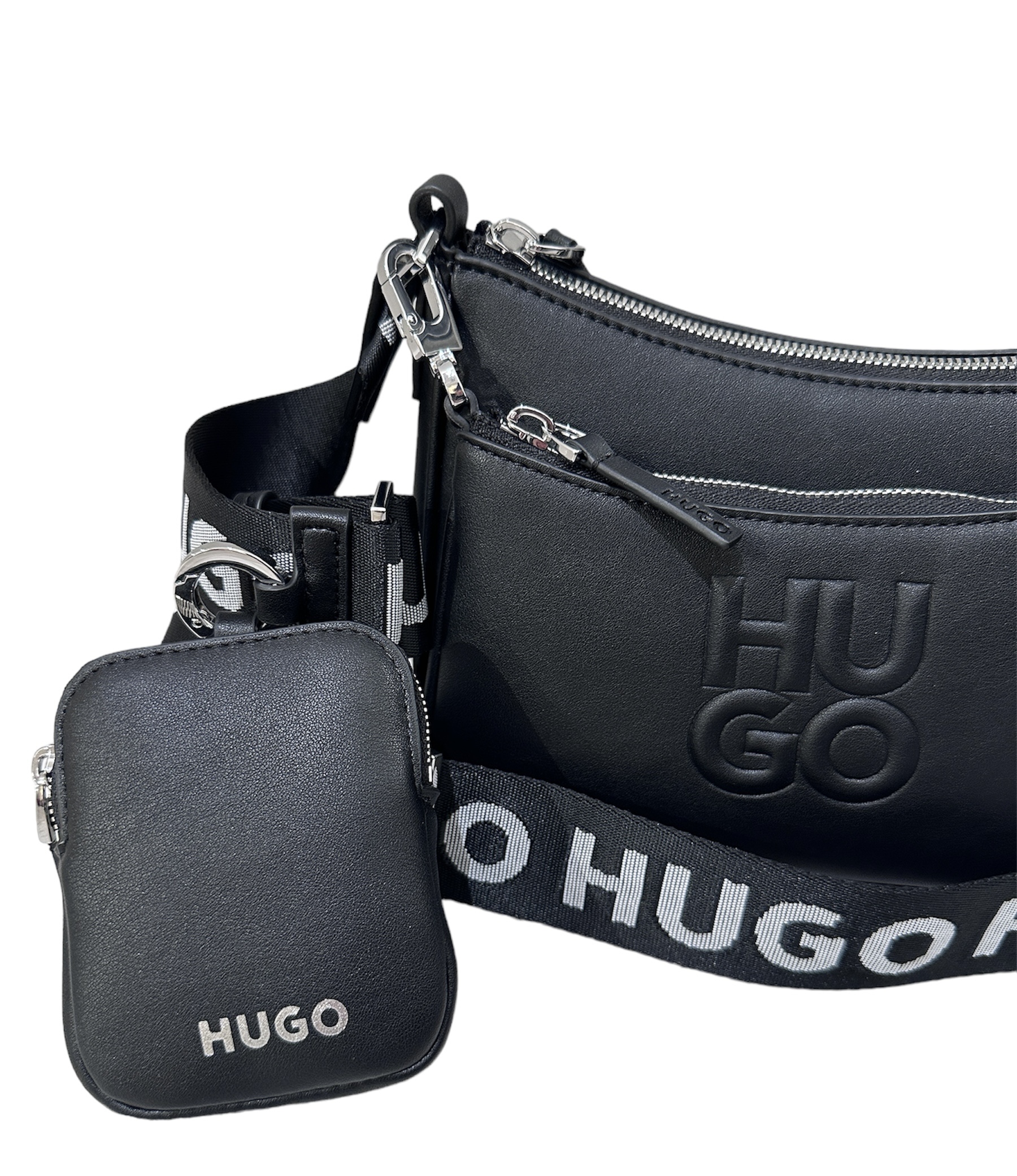 HUGO Umhängetasche aus Kunstleder im 3-in-1-Design mit zwei abnehmbaren Pouches, darunter eine mit Stack-Logo-Prägung.