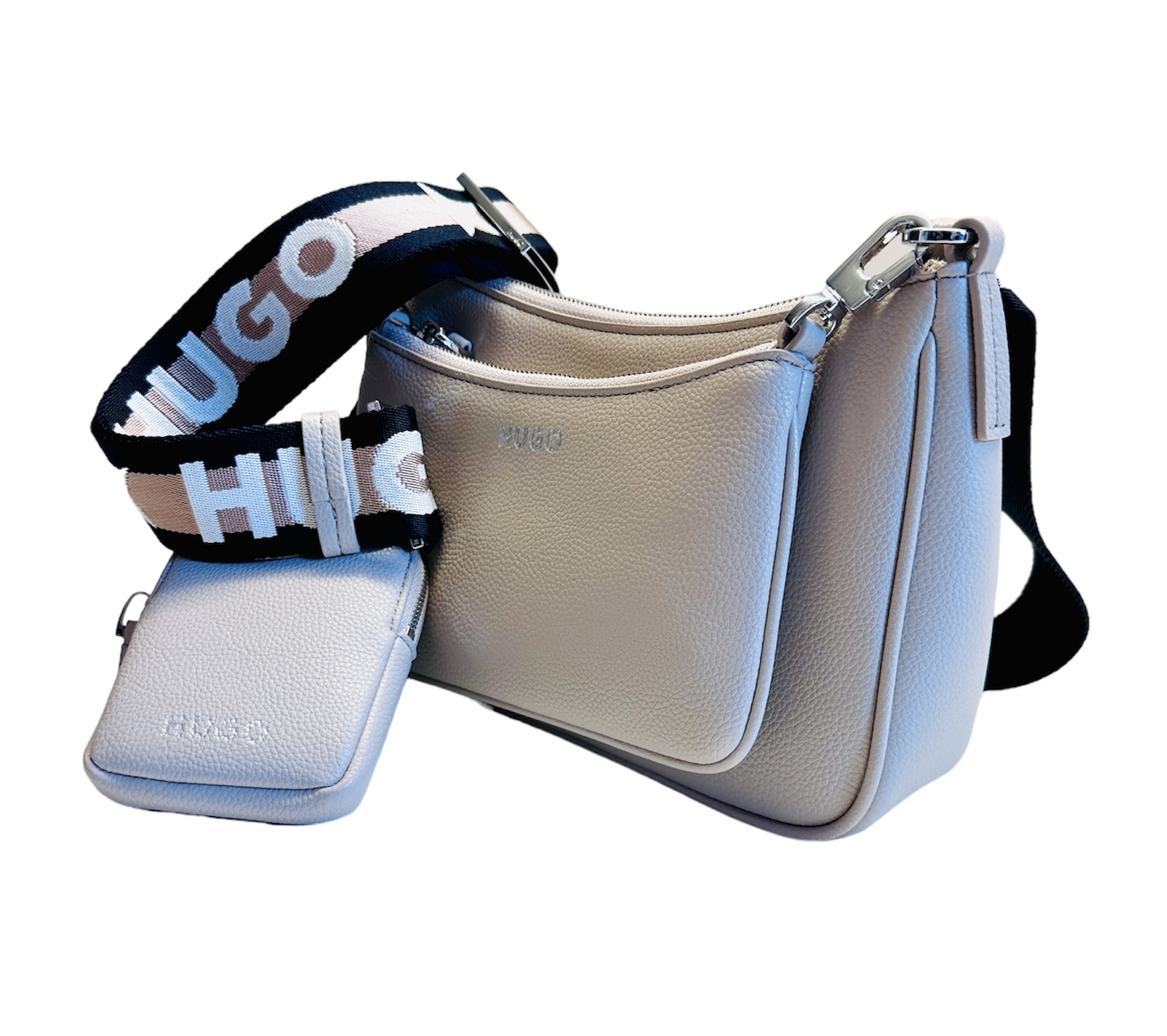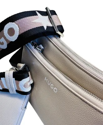 HUGO Umhängetasche aus Kunstleder im 3-in-1-Design mit zwei abnehmbaren Pouches, darunter eine mit Stack-Logo-Prägung.