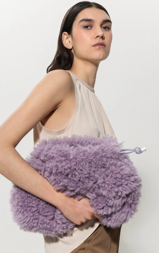 Mittelgroße Umhängetasche aus super weichem Kunstfell. Mit ihrem irisierenden Futter ist die Tasche aus jedem Blickwinkel ein absolutes Highlight.