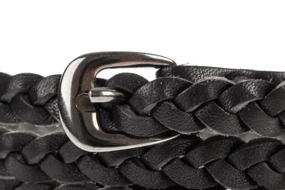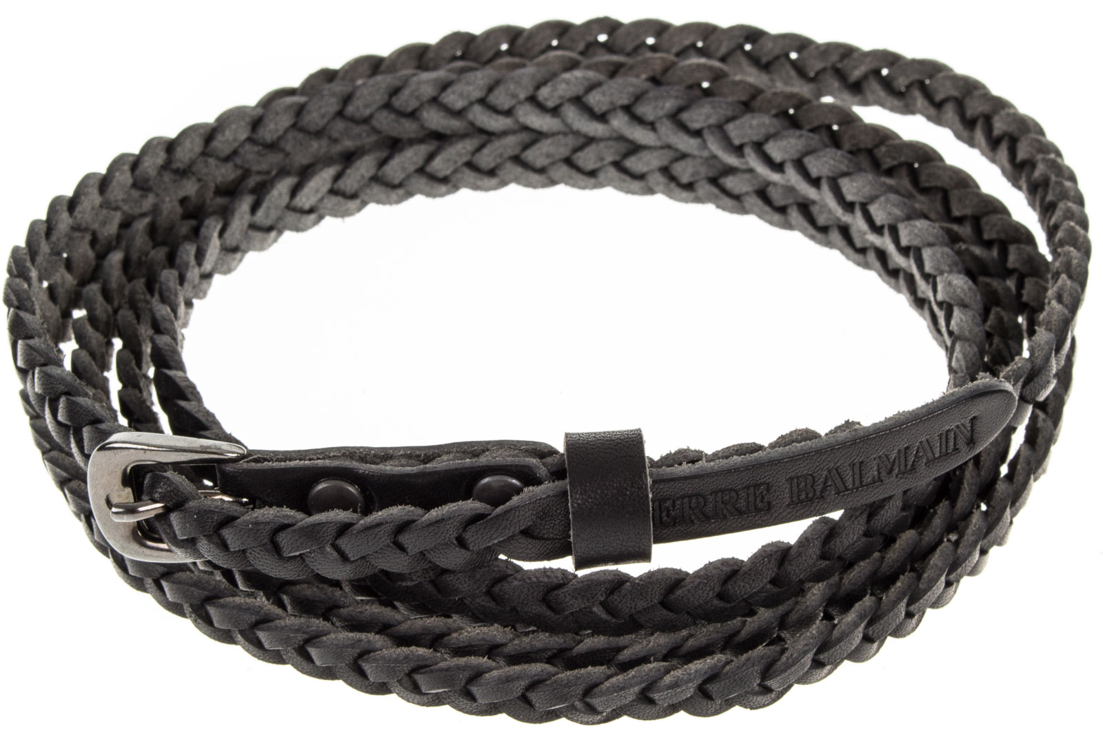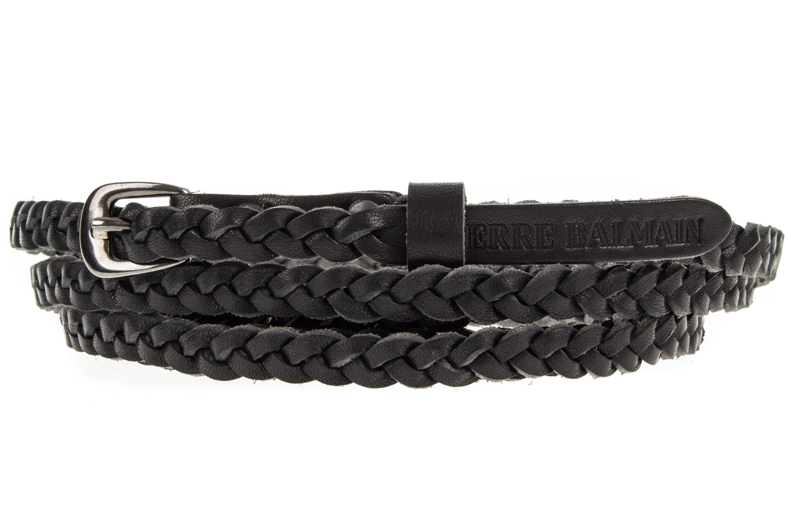Schmal geflochtener Ledergürtel mit dezentem PIERRE BALMAIN Schriftzug am Ende.