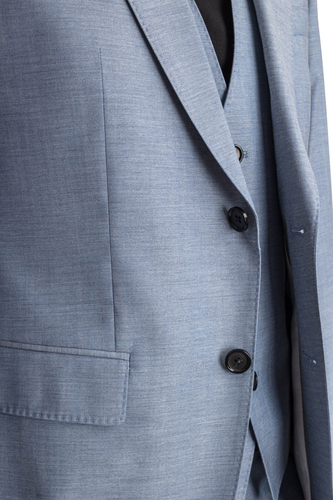 Eleganter BOSS Anzug mit schmaler Passform. Der vielseitig kombinierbare Dreiteiler aus einem melierten Woll-Mix mit Elasthan-Anteil ist knitterfrei. Ein charakteristisches Innenfutter rundet das Ensemble ab.