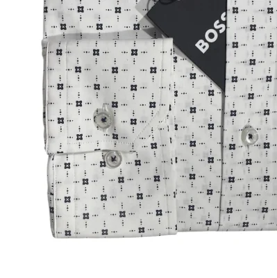 Dieses BOSS Hemd sorgt für einen markanten Business-Look. Mit einem zeitgemäßen Print versehen. Gefertigt aus Baumwolle mit Elasthan-Anteil für optimalen Tragekomfort. Zeitlose normale Passform.