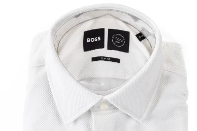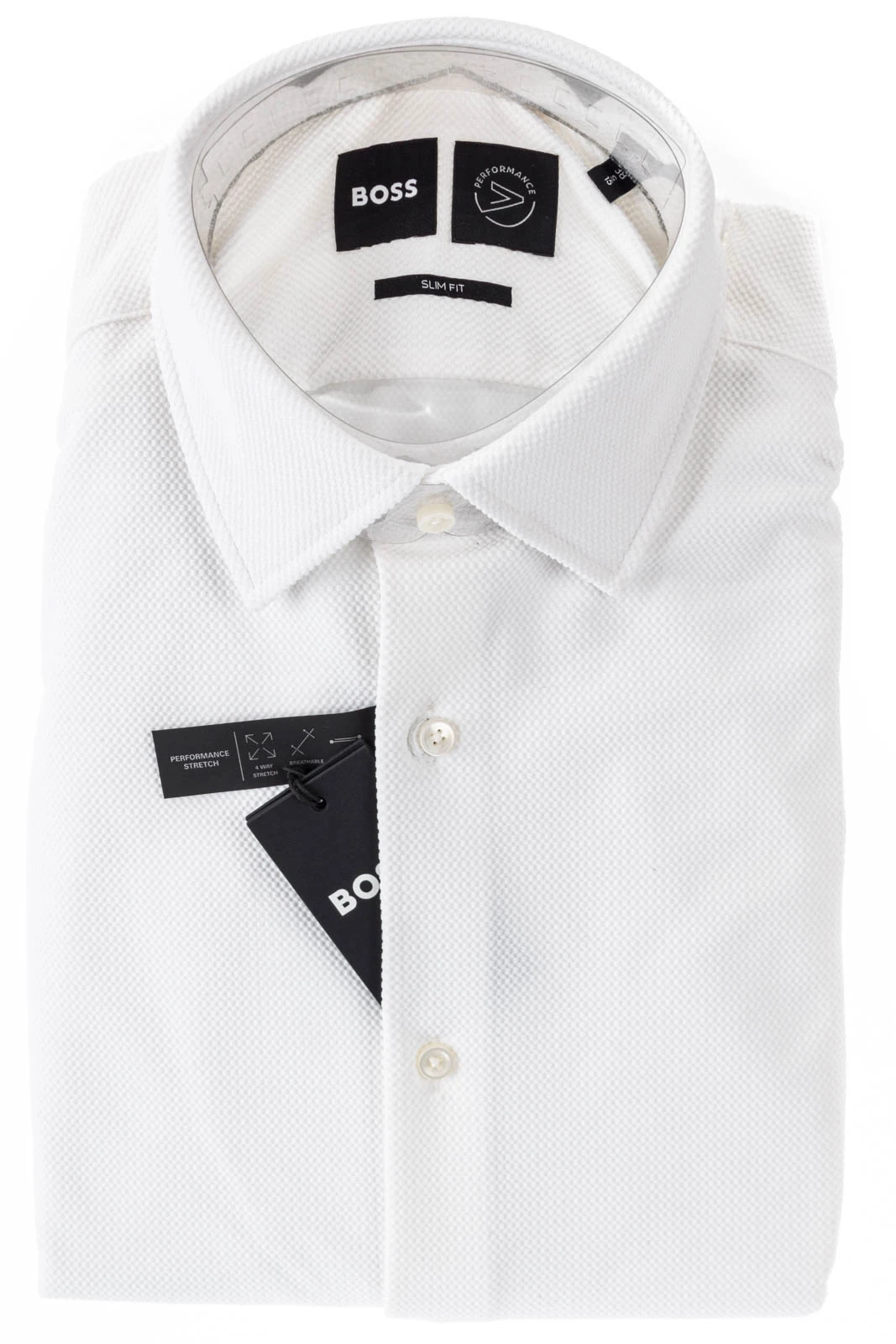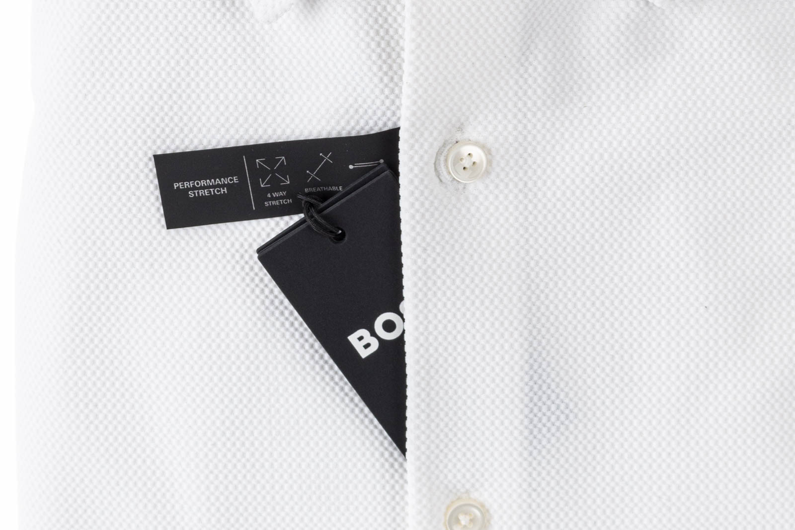 Innovatives BOSS Hemd mit zeitgemäßer schmaler Passform. Das Herren-Hemd ist aus reiner Baumwolle mit filigraner Struktur gefertigt.