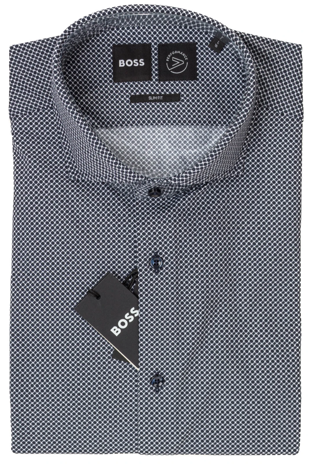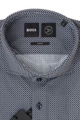 as besonders elastische BOSS Menswear Hemd mit feuchtigkeitsregulierenden Eigenschaften vereint Form und Funktion. Cleane schmale Passform mit zeitgemäßem Print.