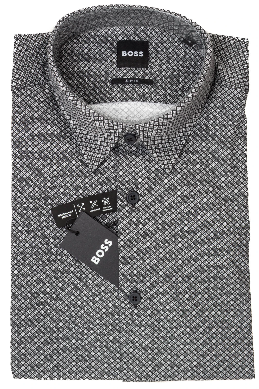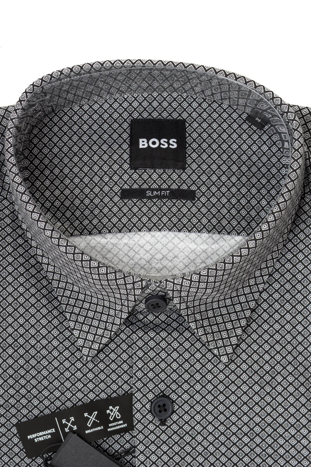 Bedrucktes Performance-Strech BOSS Hemd in zeitgemäßem Print. Schmal geschnitten.