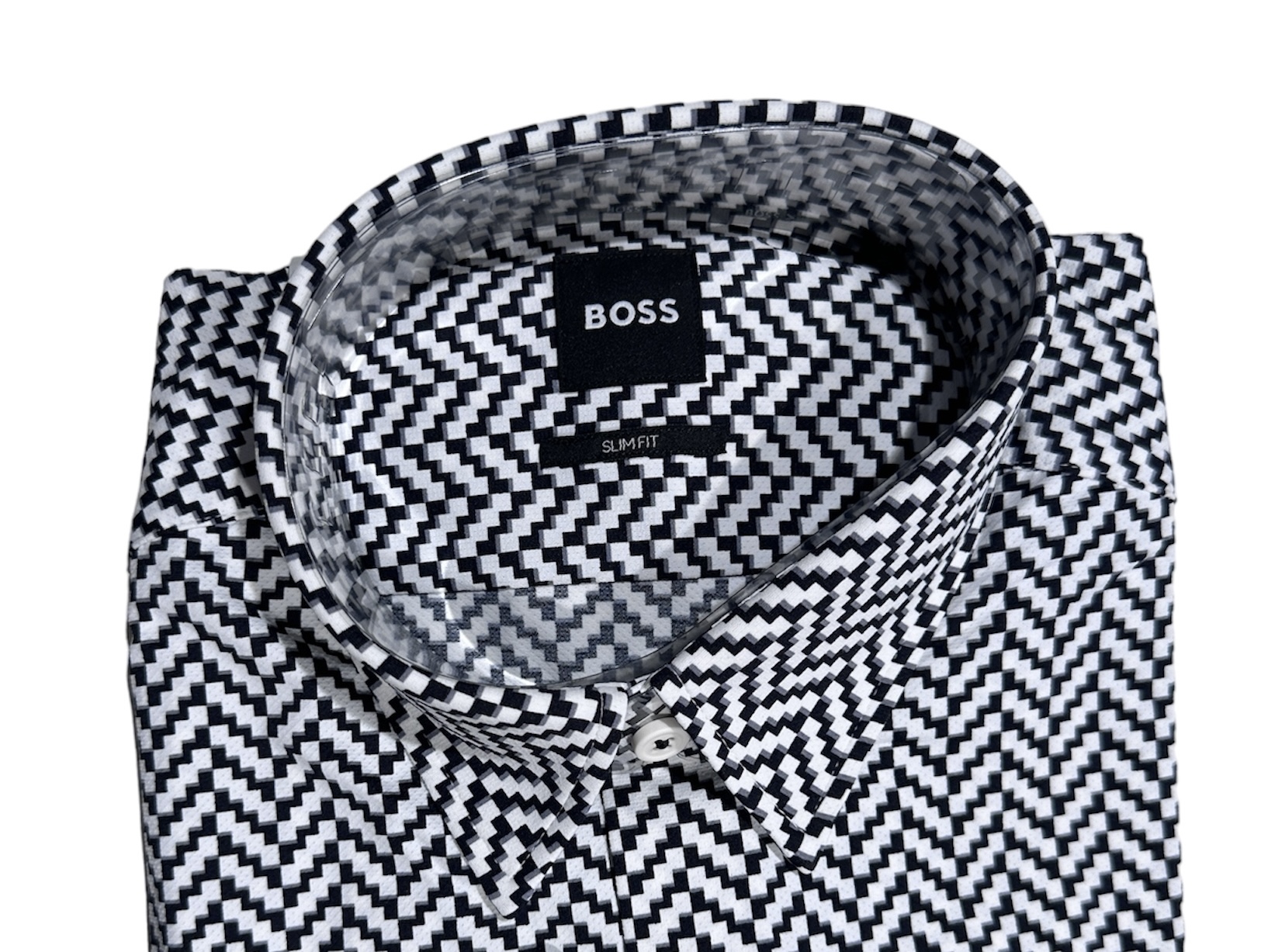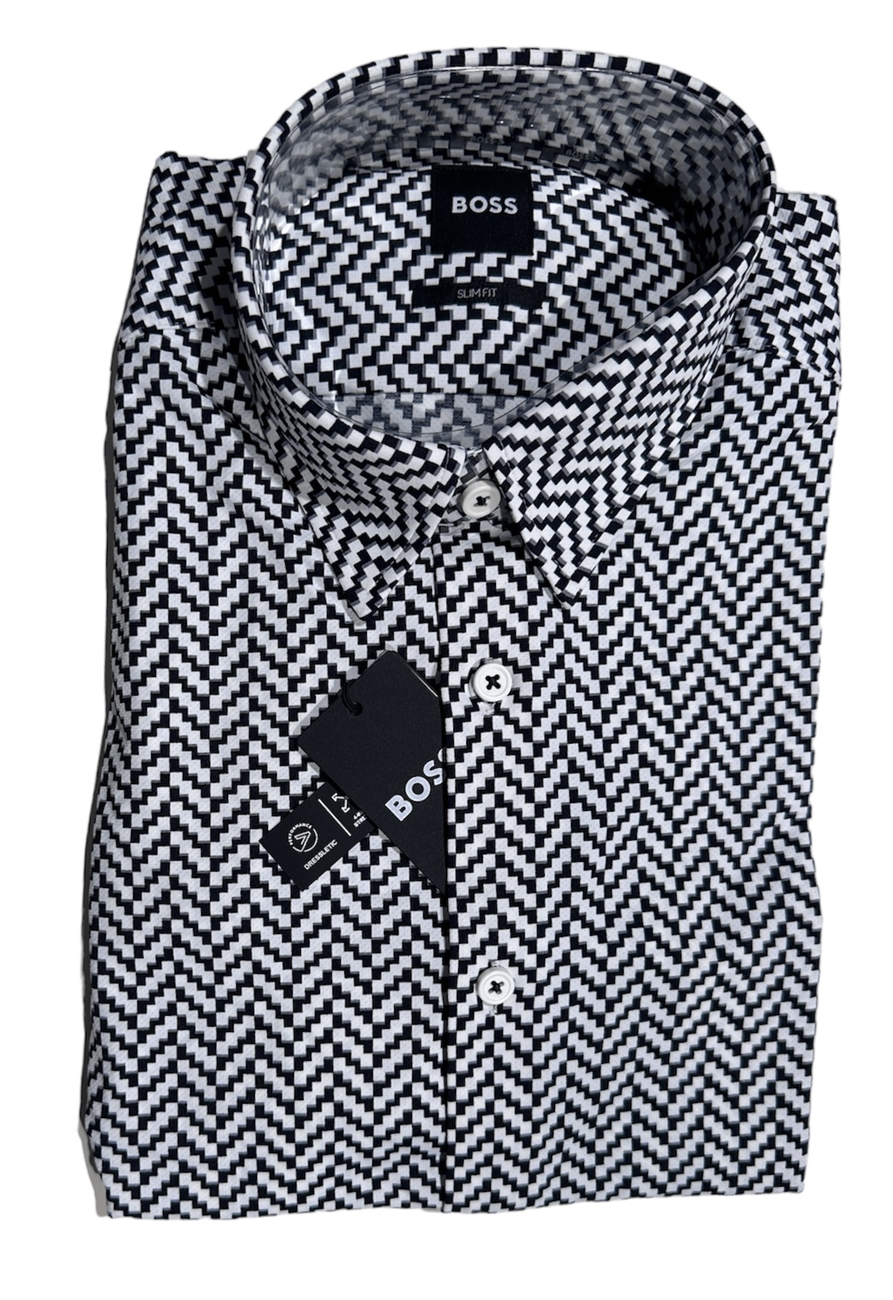 Vielseitig kombinierbares BOSS Hemd mit saisonalem Print. Der schmal geschnittene Style aus funktionalem Stretch-Gewebe verspricht hohen Tragekomfort.