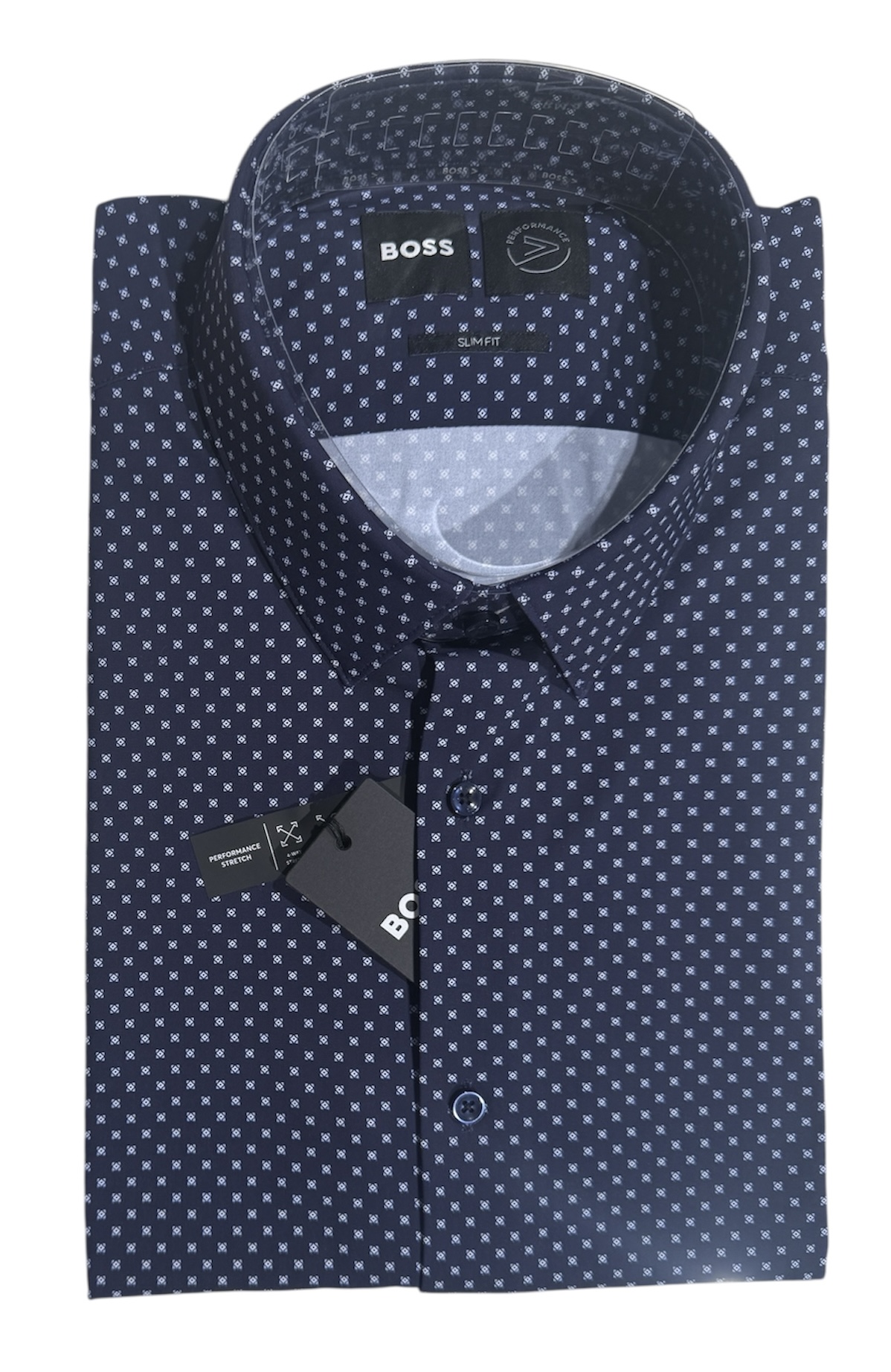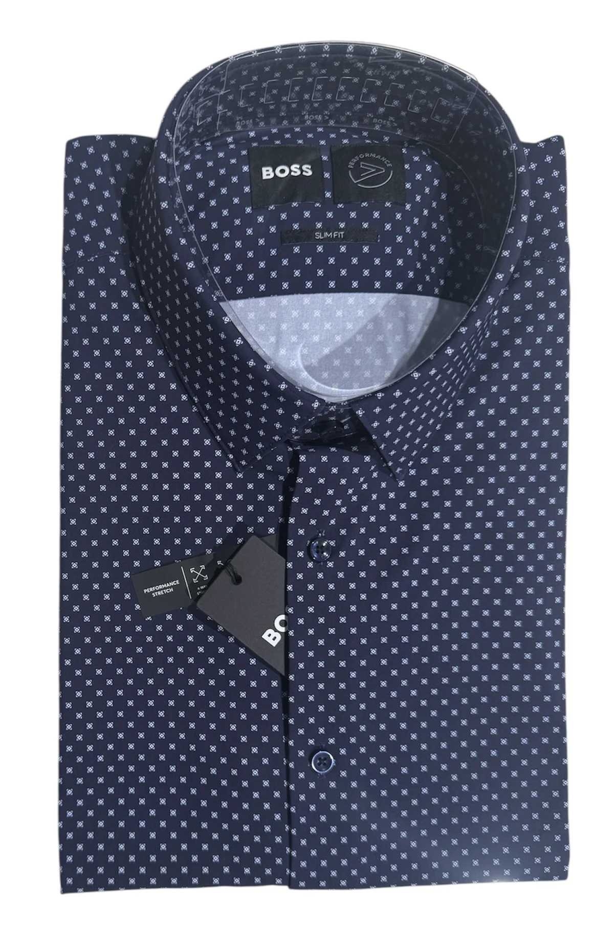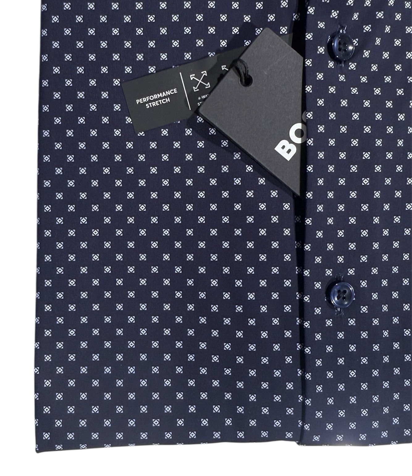 Mit seiner cleanen Passform und dem zeitgemäßen Print bringt das BOSS Hemd frischen Wind in deine Sommer-Looks. Aus einem besonders elastischen Material-Mix für optimale Bewegungsfreiheit.