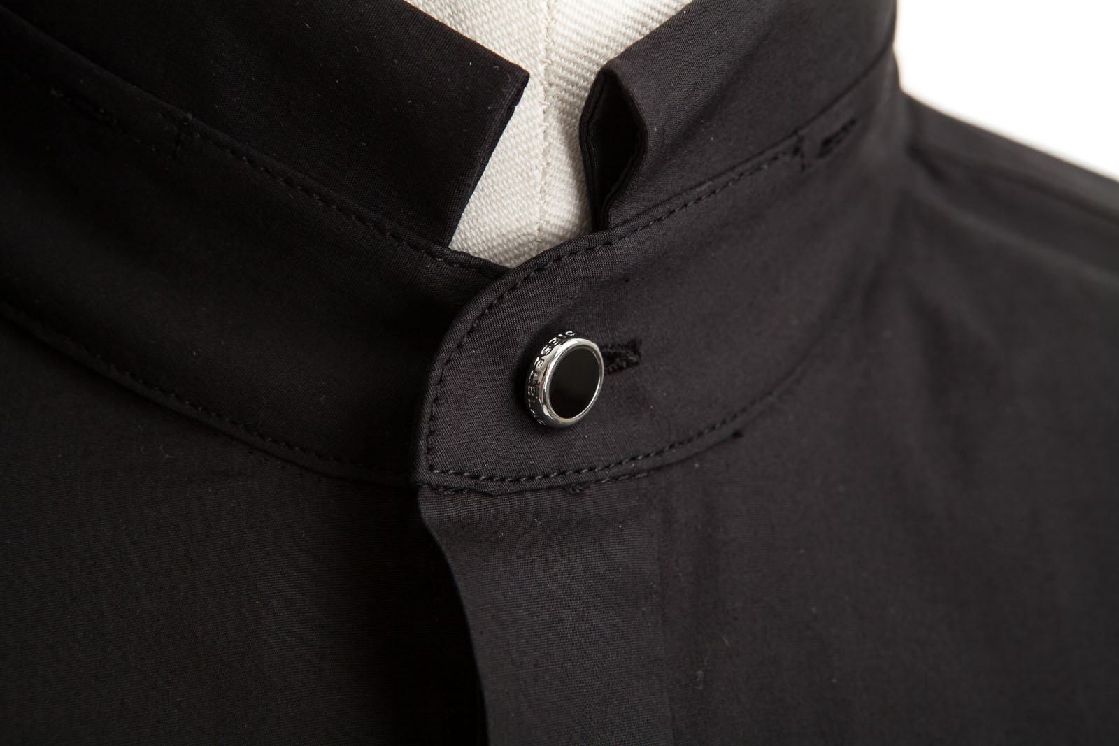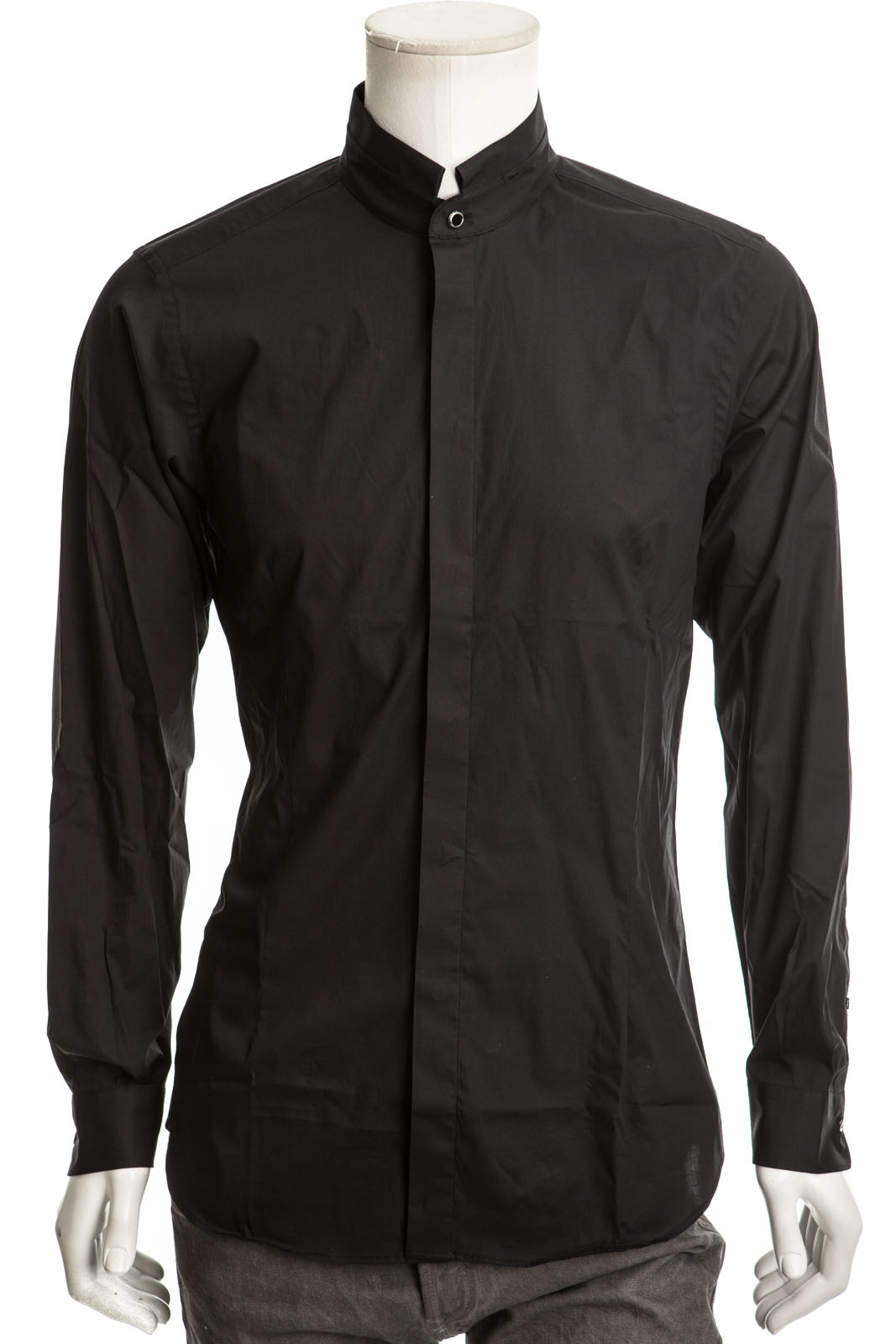 Tailliert geschnittenes Hemd mit Stehkragen und verdeckter Knopfleiste.