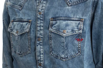 Regular-Fit-Langarm-Shirt für Herren, mit typischen Western-Details und Druckknöpfen aus Metall. Mit roter Oval D-Logo-Stickerei auf der Brusttasche. Aus TENCEL™ Lyocell-Denim in einer soften, leichten Textur in einem nuancierten Mittelblau.