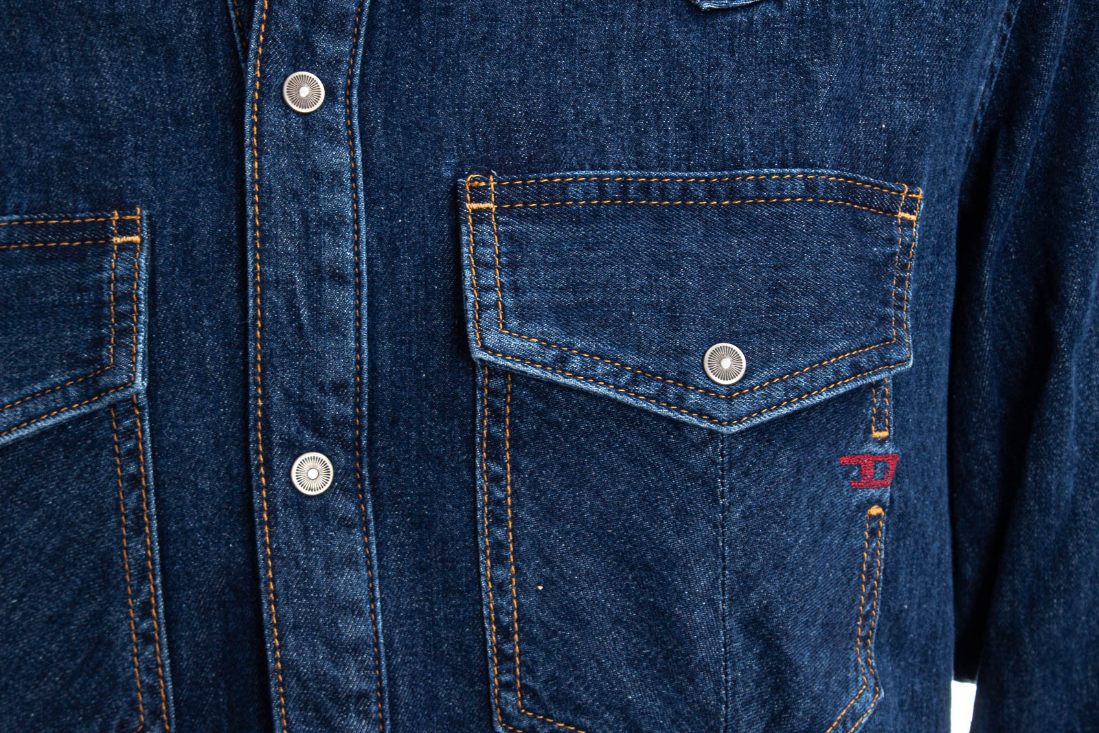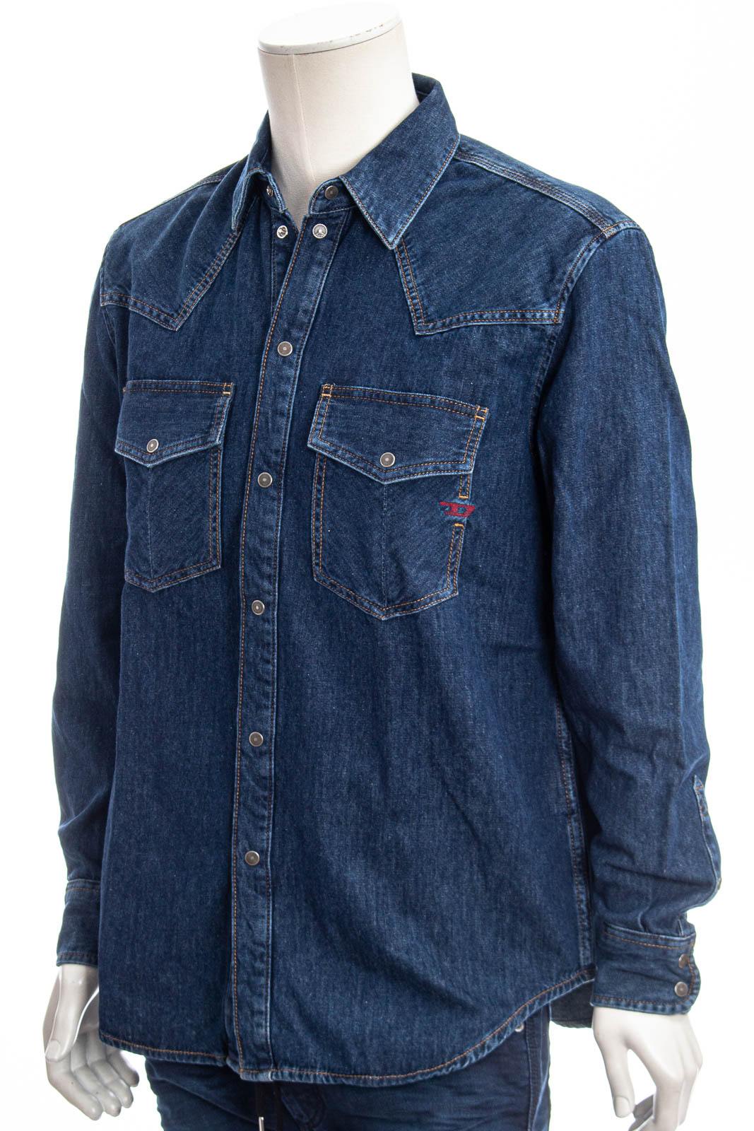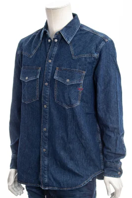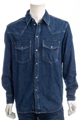 Jeanshemd. Gefertigt aus Baumwolldenim in regulärer Passform mit D-Logostickerei in Rot.
