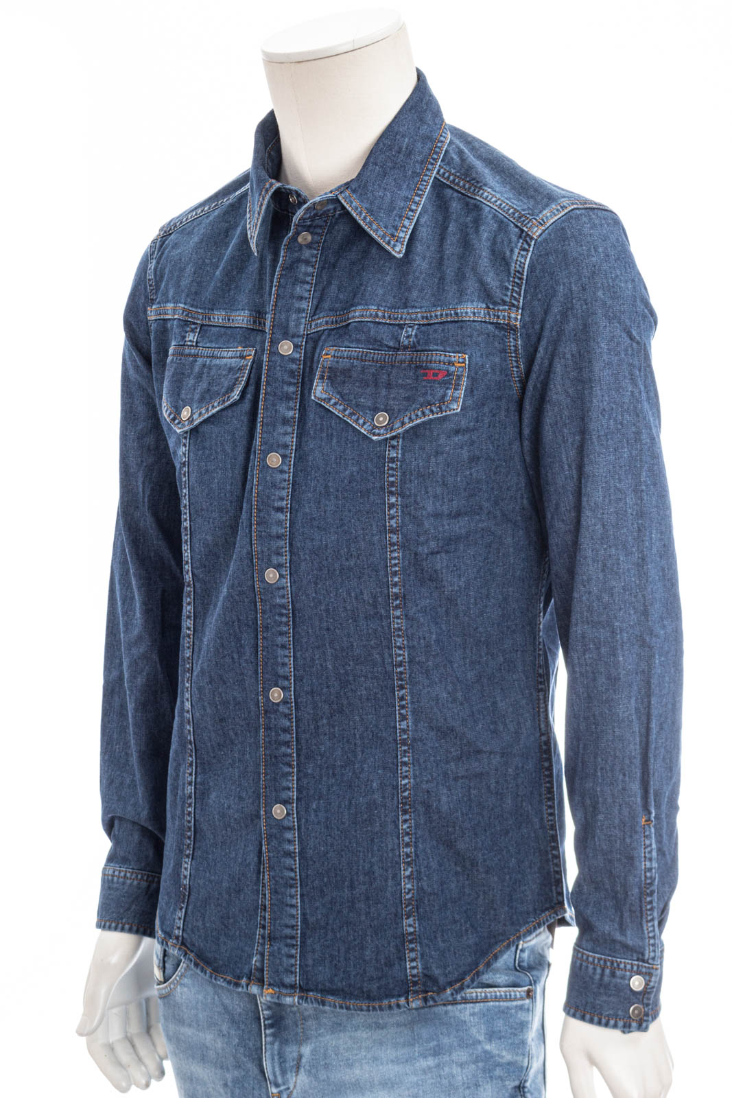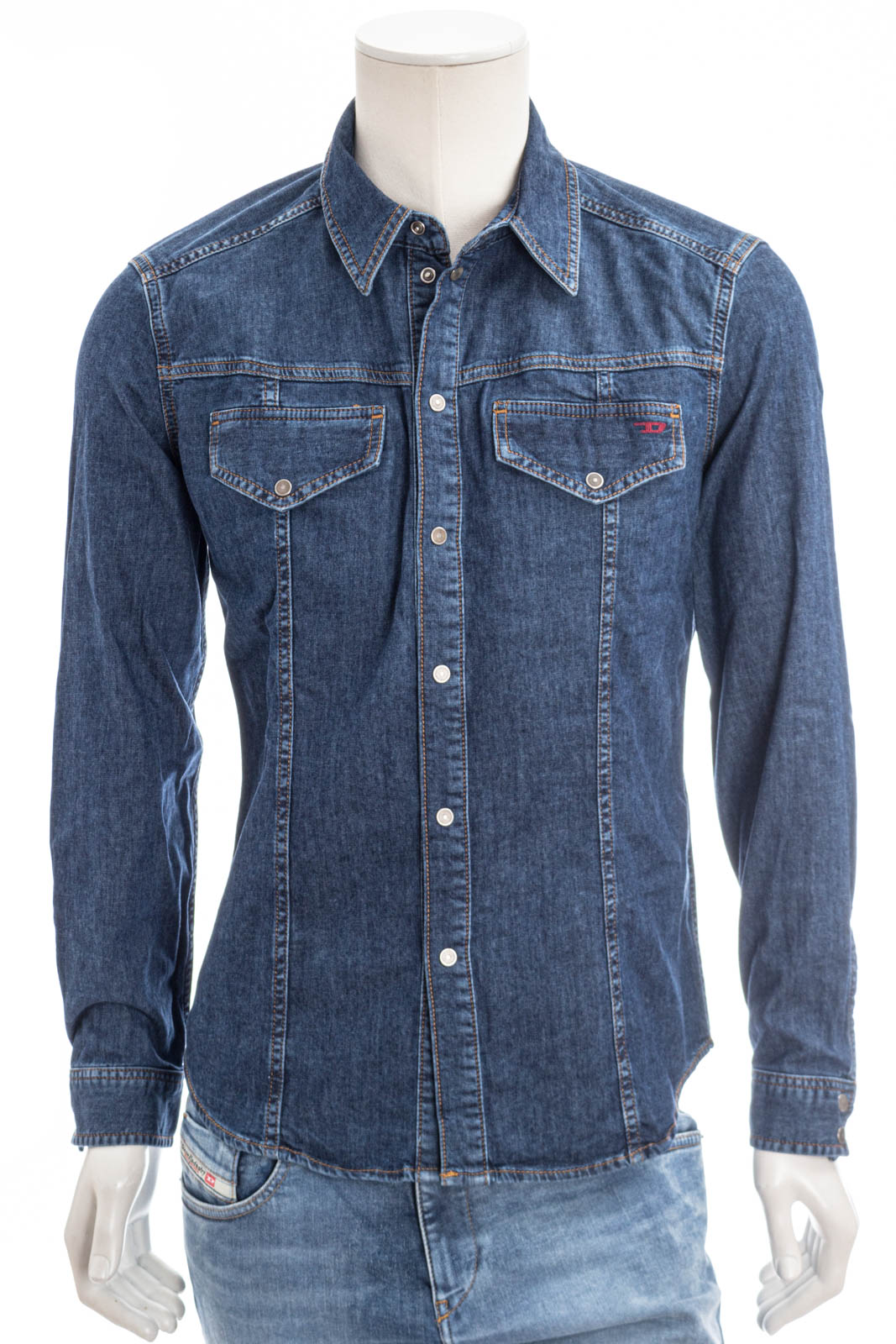 Tailliert geschnittenes Jeanshemd mit dezent roter DIESEL-Stickerei.
