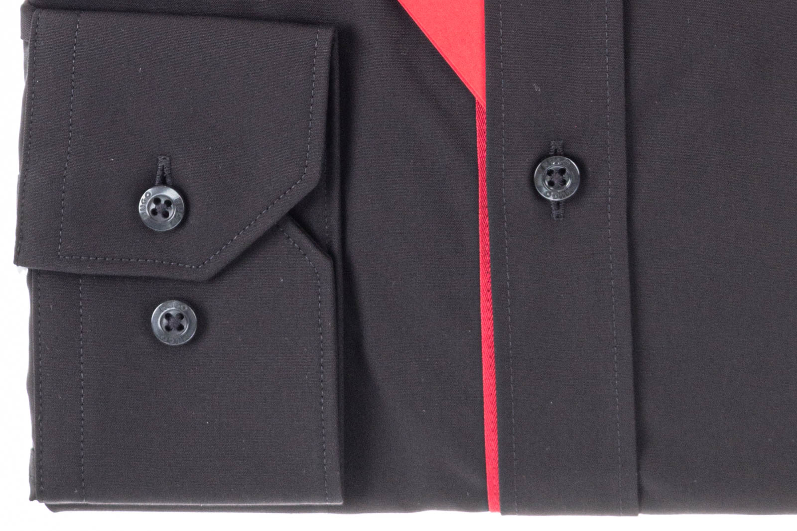 Tailliert geschnittenes Hemd mit rotem Streifen entlang der Knopfleiste.