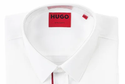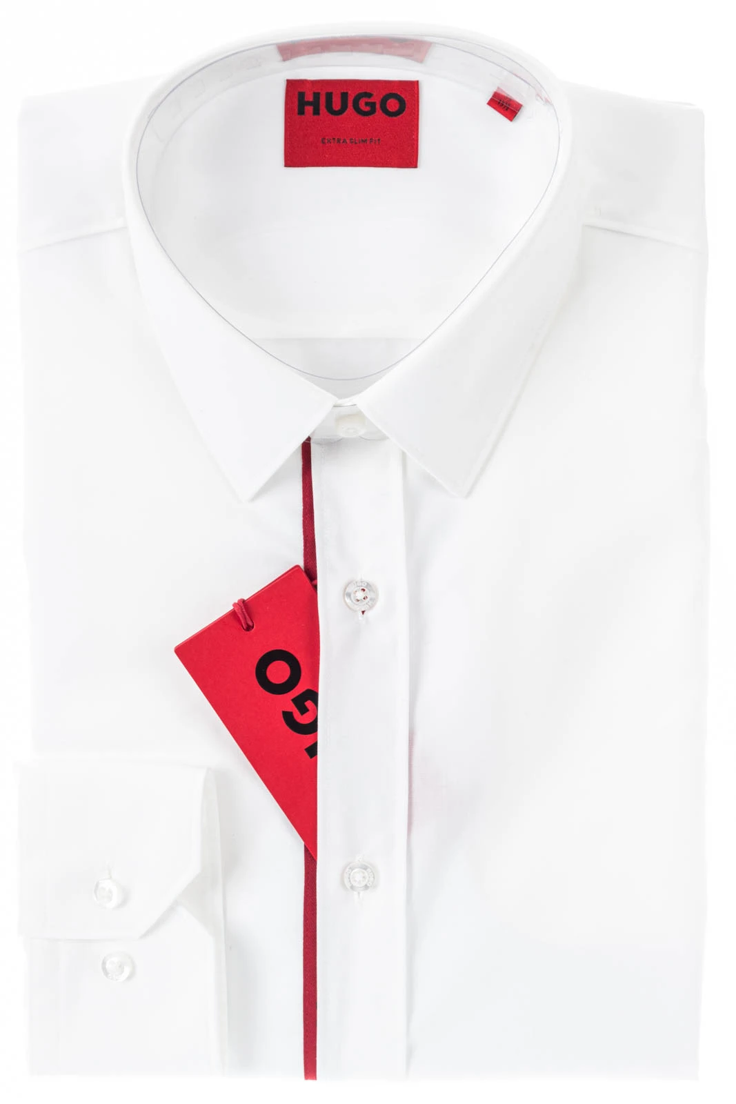 Tailliert geschnittenes Hemd mit rotem Streifen entlang der Knopfleiste.