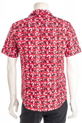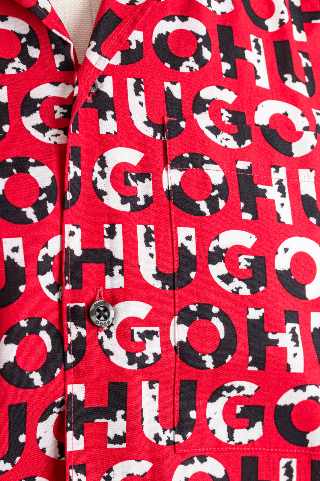 Originelles HUGO Kurzarm-Hemd mit lockerer Passform und durchgehendem Logo-Print mit Kuhflecken.
