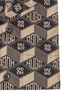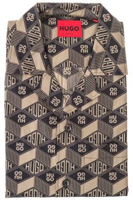 Locker geschnittenes HUGO Kurzarm-Hemd. Das Hemd aus Baumwoll-Popeline ist mit einem Logo-Print versehen.