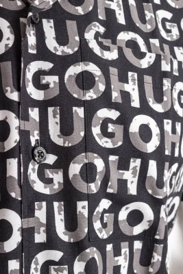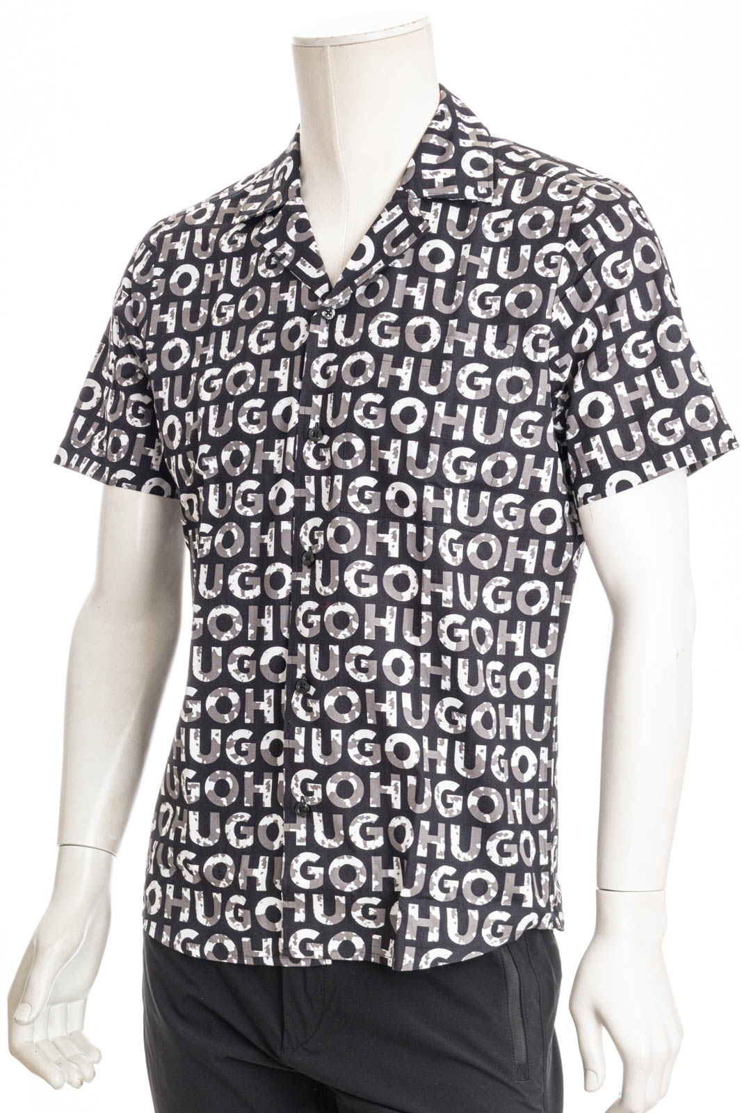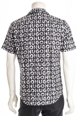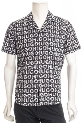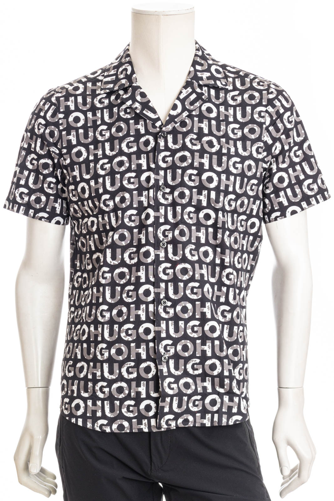 Originelles HUGO Kurzarm-Hemd mit lockerer Passform und durchgehendem Logo-Print mit Kuhflecken.