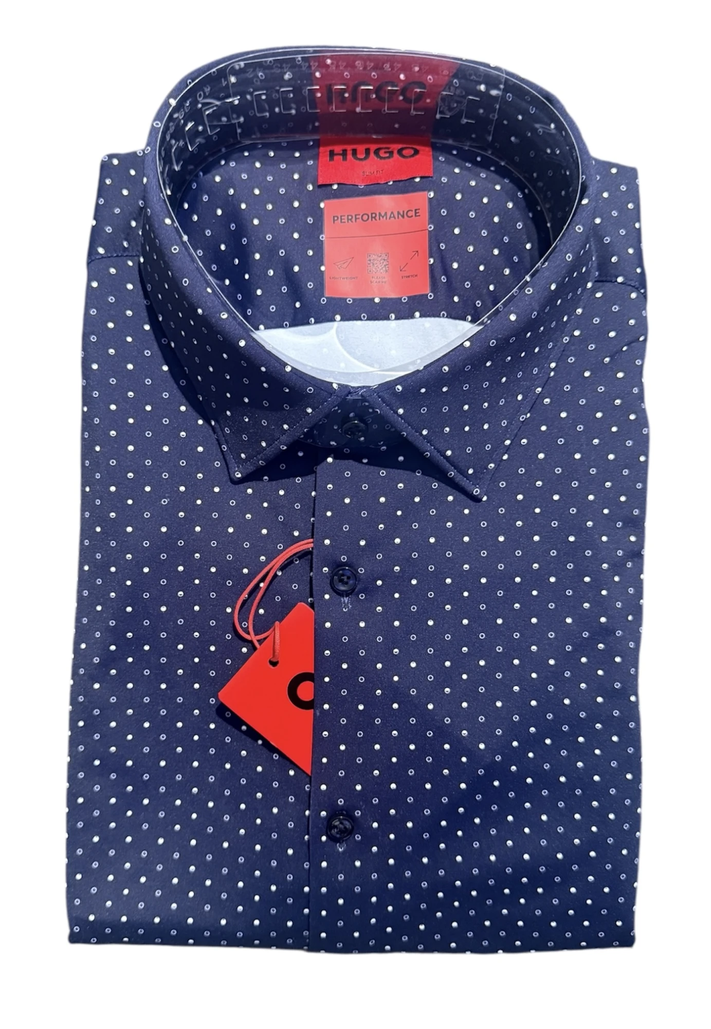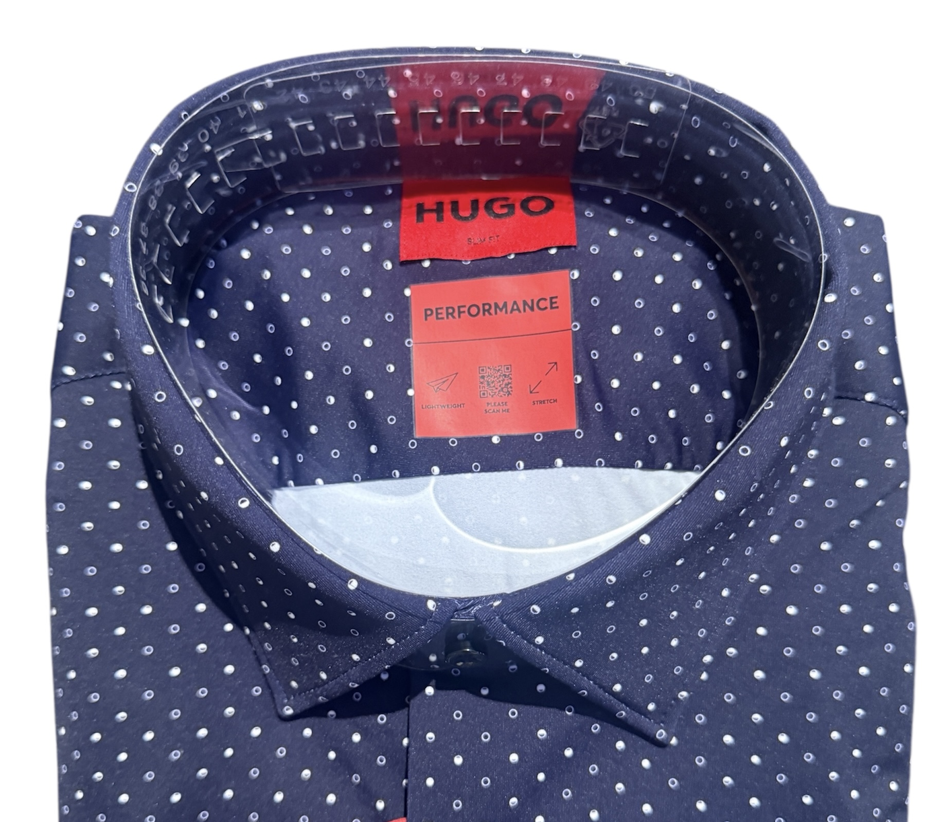 Das schmal geschnittene HUGO Menswear Hemd aus besonders flexiblem Jersey verspricht hohen Tragekomfort. Der Mikro-Print macht Office-Looks besonders interessant.