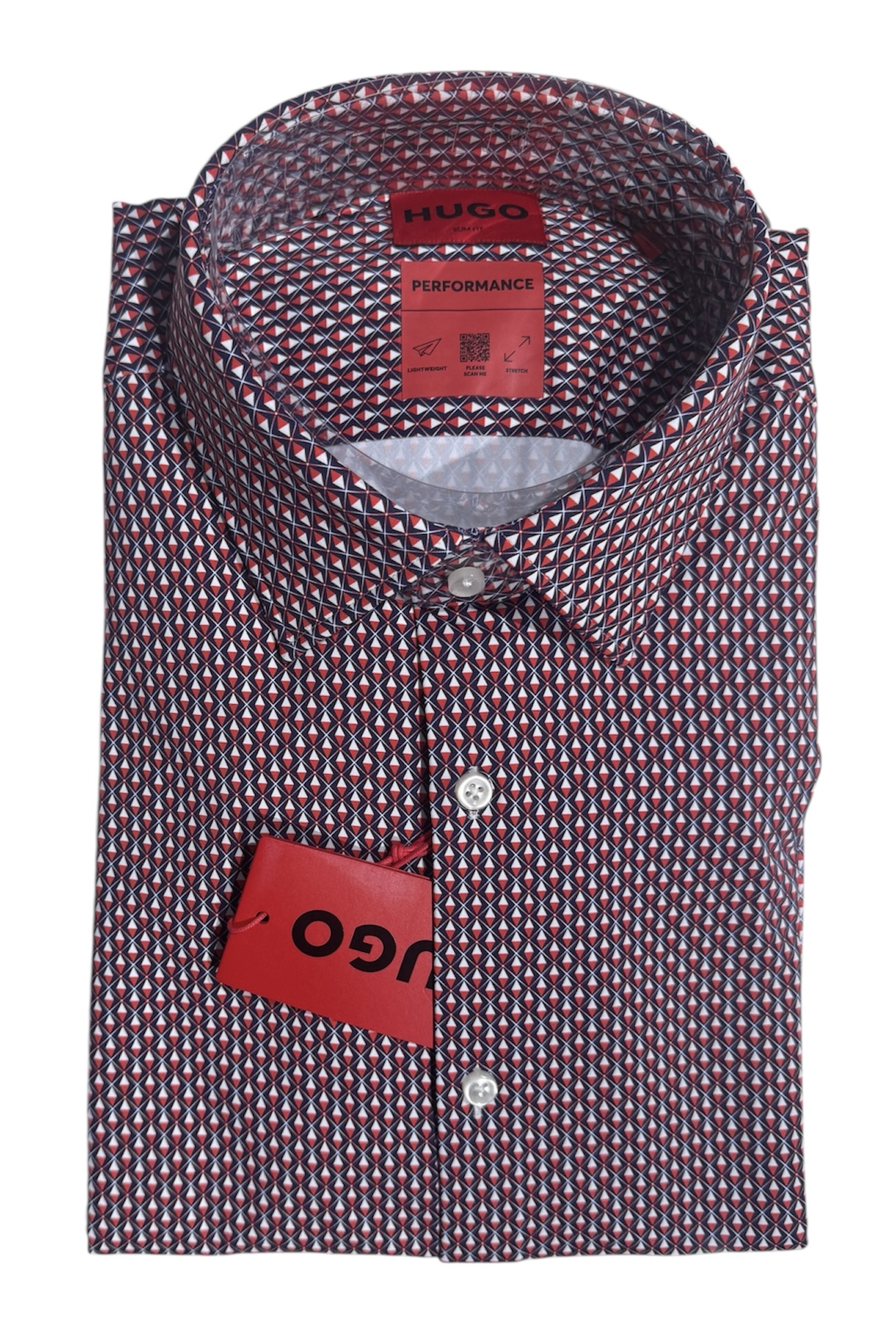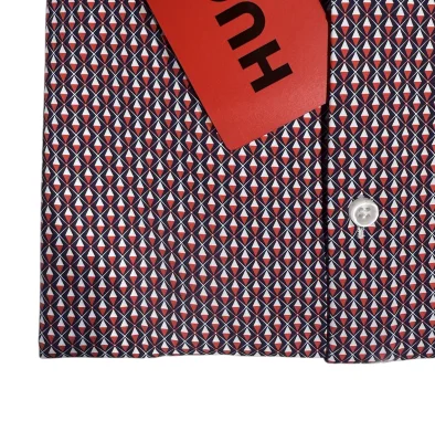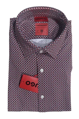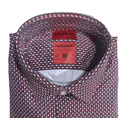 Das schmal geschnittene HUGO Menswear Hemd aus besonders flexiblem Jersey verspricht hohen Tragekomfort. Der Mikro-Print macht Office-Looks besonders interessant.