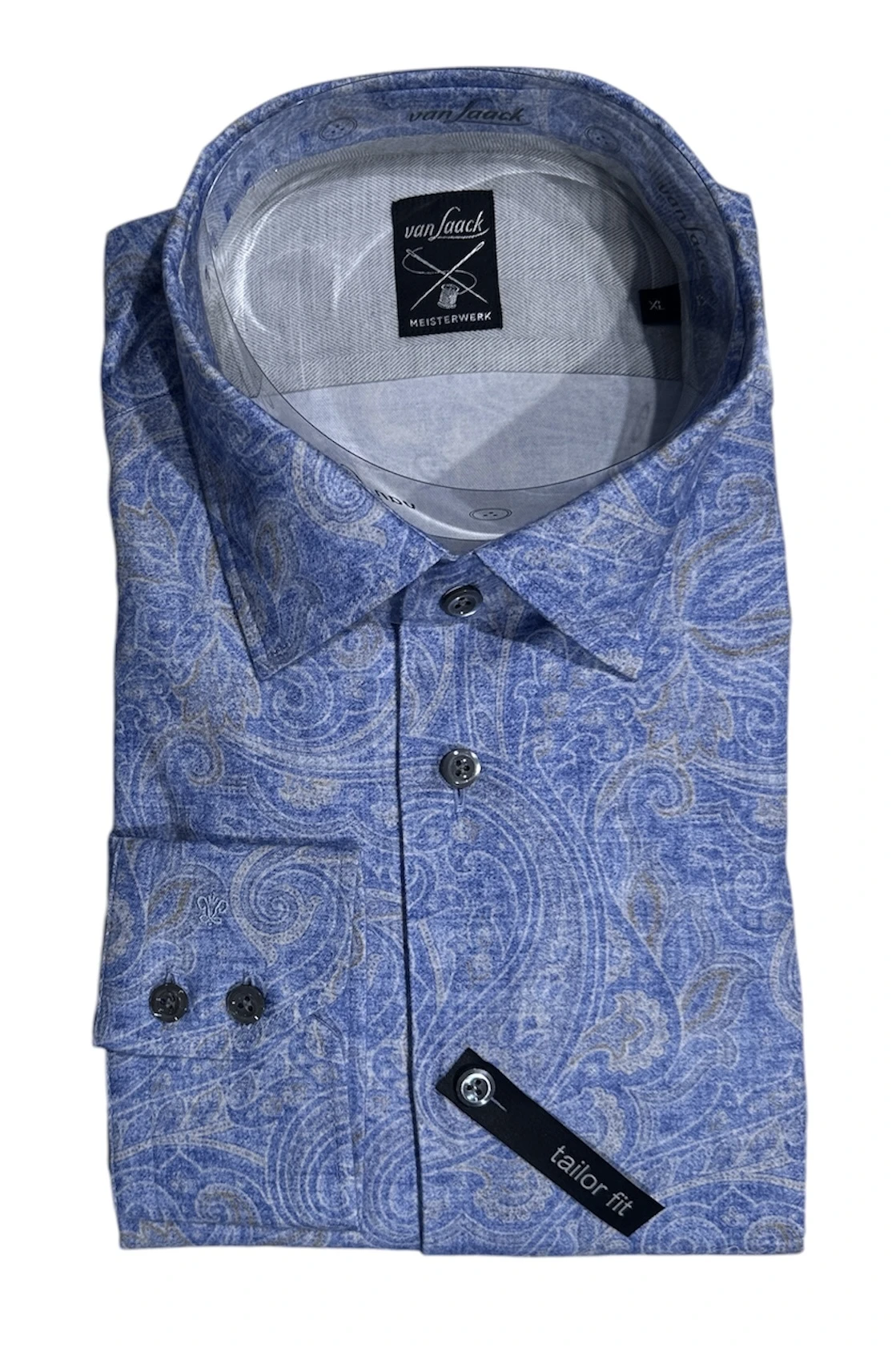 Das Flanell-Hemd bietet eine Tailor Fit Passform und kombiniert klassischen Stil mit einem Print. Es besteht aus hochwertigem Flanellstoff mit einem Paisleymuster. Die offene Knopfleiste und der Haifischkragen sorgen für eine zeitgemäße Note. Ergänzt wird das Design durch stilvolle Perlmuttknöpfe, die einen eleganten Akzent setzen.