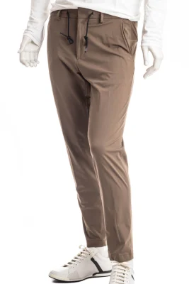 Schmal geschnittene BOSS Business-Hose aus funktionalem Stretch-Jersey mit flacher Vorderseite und Tunnelzug.