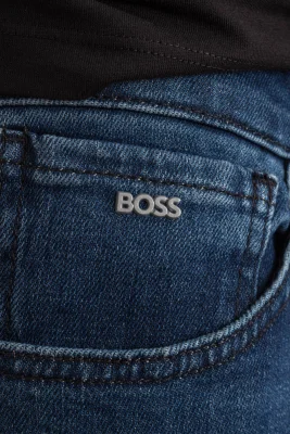 Legere BOSS Jeans aus komfortablem blauem Stretch-Denim mit gerader Passform, mittlerer Bundhöhe und konischem Beinverlauf.
