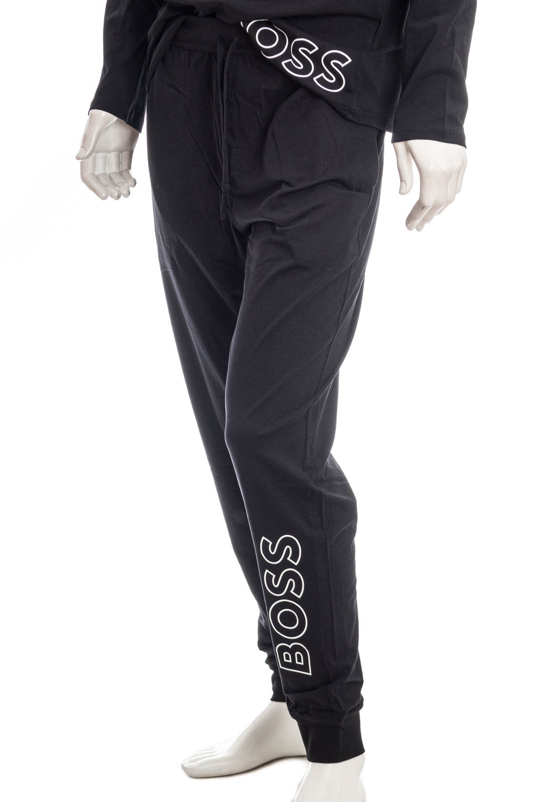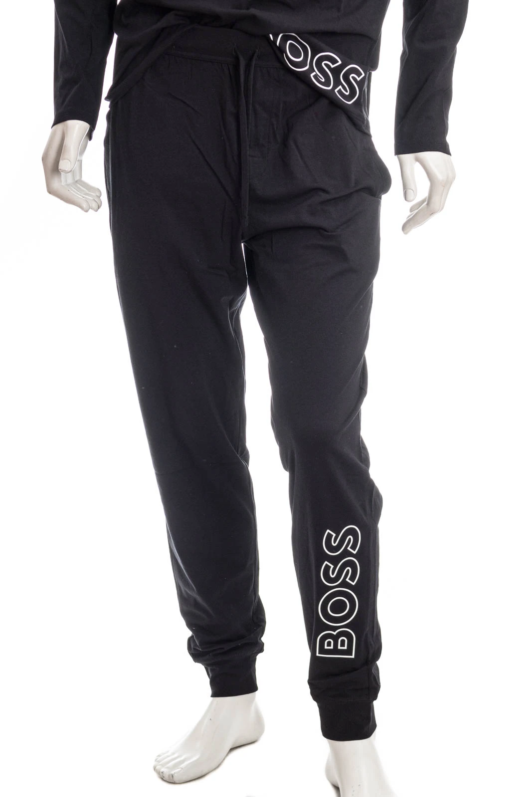 Bequeme BOSS Pyjama-Hose mit BeinbĂĽndchen. Die Herren-Hose ist aus einem soften Baumwoll-Mix mit Elasthan-Anteil gefertigt und mit einem vertikalen BOSS Outline-Logo am linken Bein versehen. Dazu passend: HUGO BOSS HBB Sweatshirt IDENTITY LS-SHIRT, Art.Nr.: 50481200 003.
