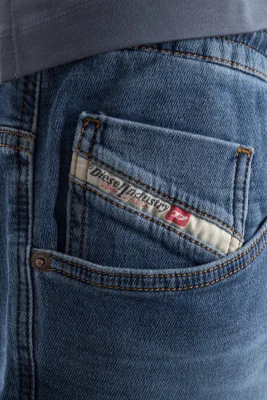 Jeans mit regulärem Bund und enger zulaufendem Beinschnitt hin zum Knöchel. Dieser Style ist aus JoggJeans-Stoff für allerhöchsten Tragekomfort gefertigt und mit einem aufgestickten roten D-Logo und einem elastischen Bund versehen.
