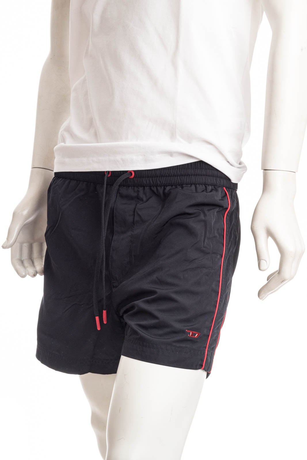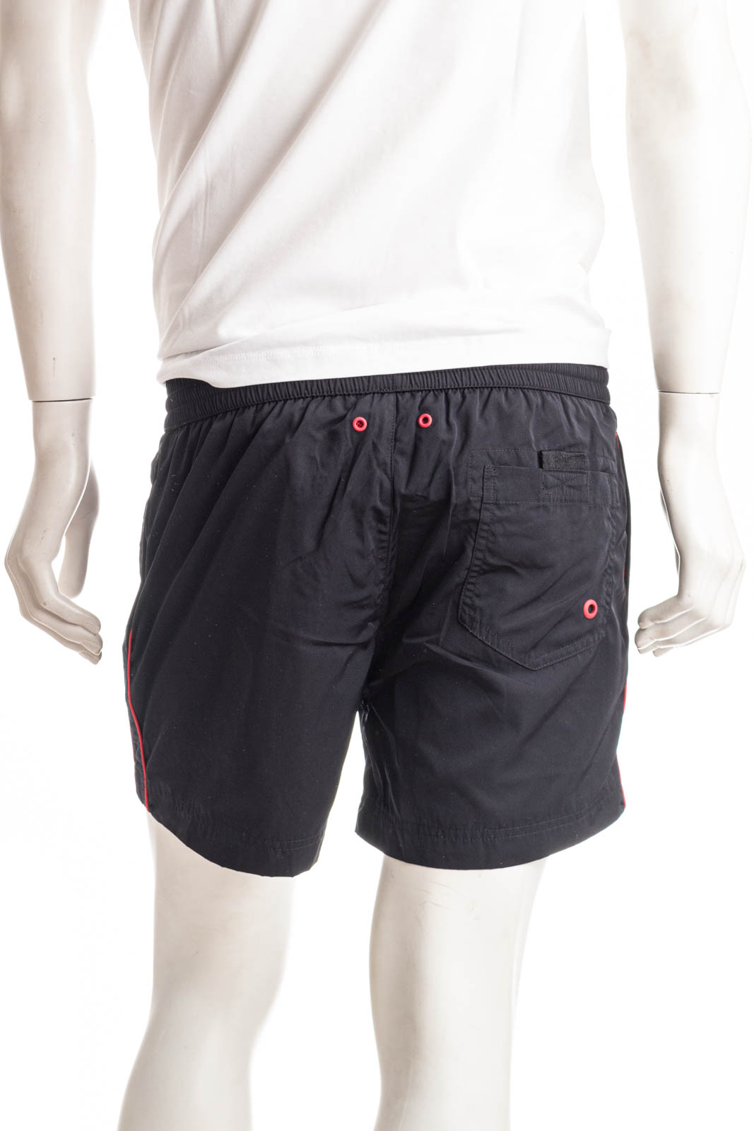 Badeshorts für Herren aus leichtem, schnelltrocknendem Recyclingmaterial. Style in Mittellänge mit sportlichen Seitenpaspeln, verstellbarem Tunnelzugbund, wasserableitenden Ösen und komfortablem Futter. Kleines rotes D-Logo an der Front.
