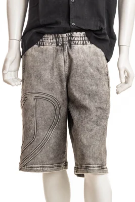 Der Style der Shorts in dunkelgrauer Waschung besteht aus teilweise recycelter Baumwolle und zeichnet sich durch ein groĂźes umrissenes Oval D aus. Der Stoff ist leicht behandelt, um einen marmorierten Effekt zu erzielen.