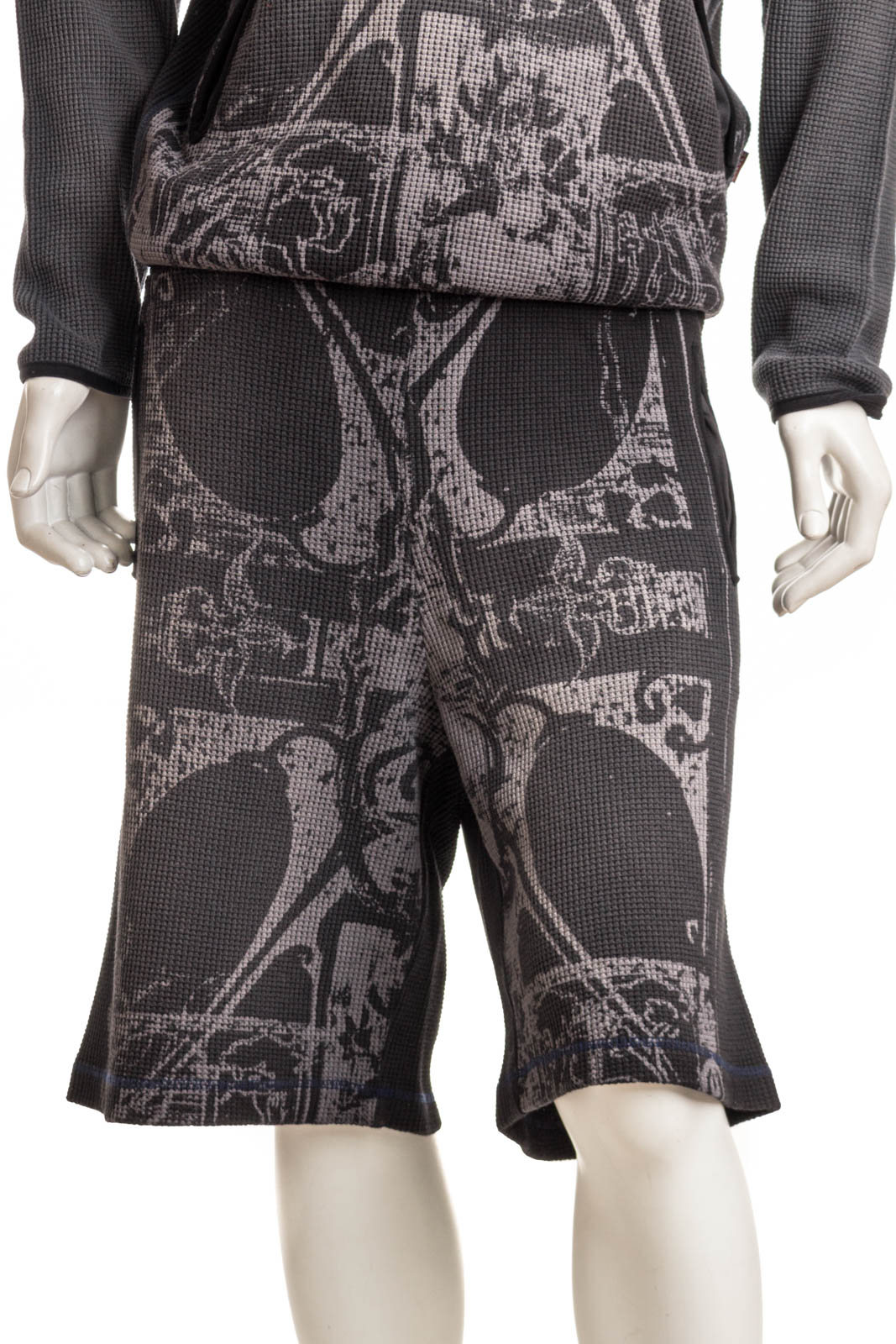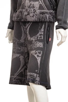 Diese aus Bio-Baumwolle in schwammigem Waffelstrick geschnittenen Shorts für Herren sind Teil einer künstlerischen Kollaboration: das elegante Kunstwerk ist mittelalterlich inspiriert. Gebundene Tascheneingriffe aus Lycra betonen das lange Profil, während eine Inside-Out-Färbung für einen vielgetragenen Look sorgt.