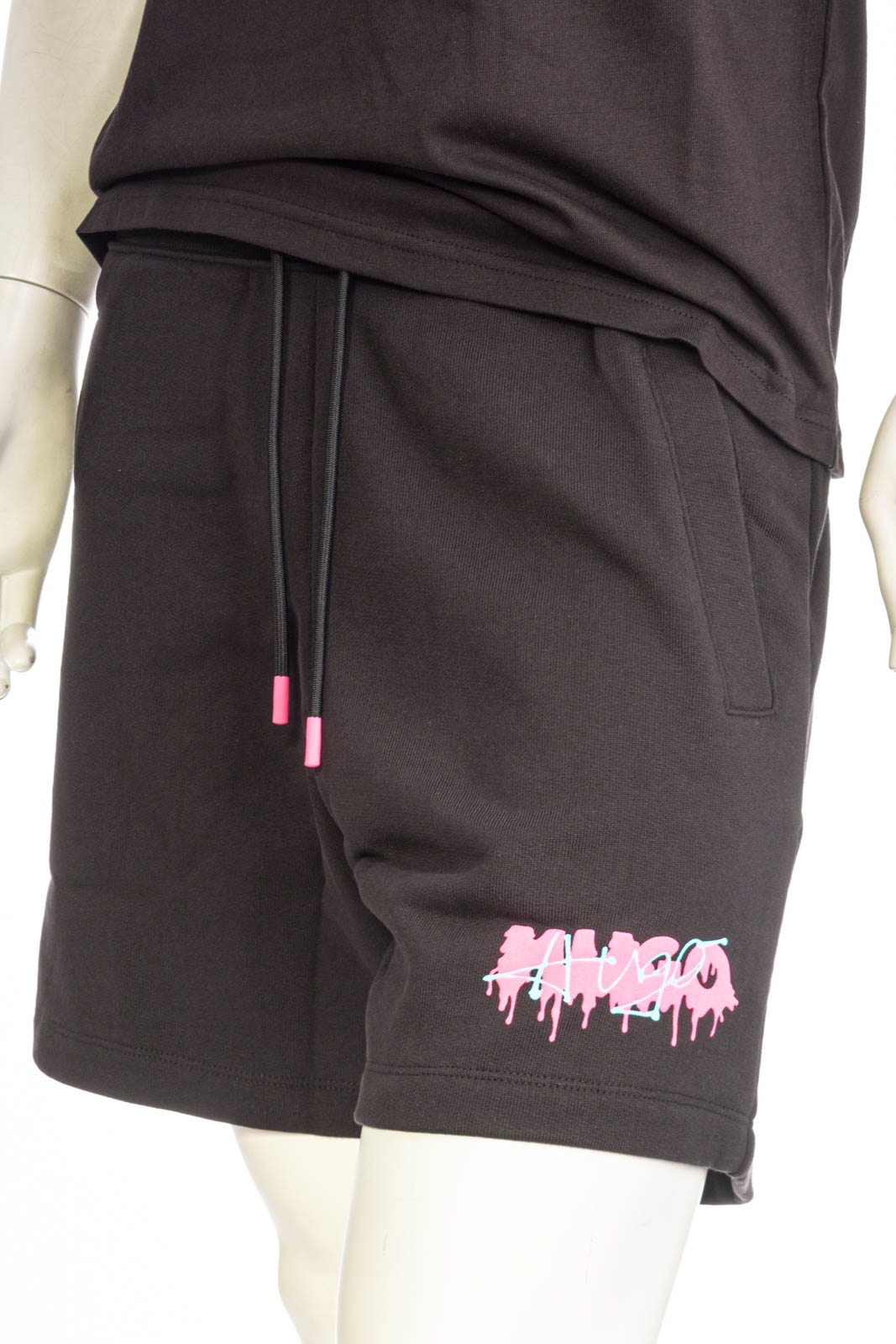 Lässige HUGO Shorts aus French Terry mit lockerer Passform und Logo in schmelzender Optik am linken Bein.