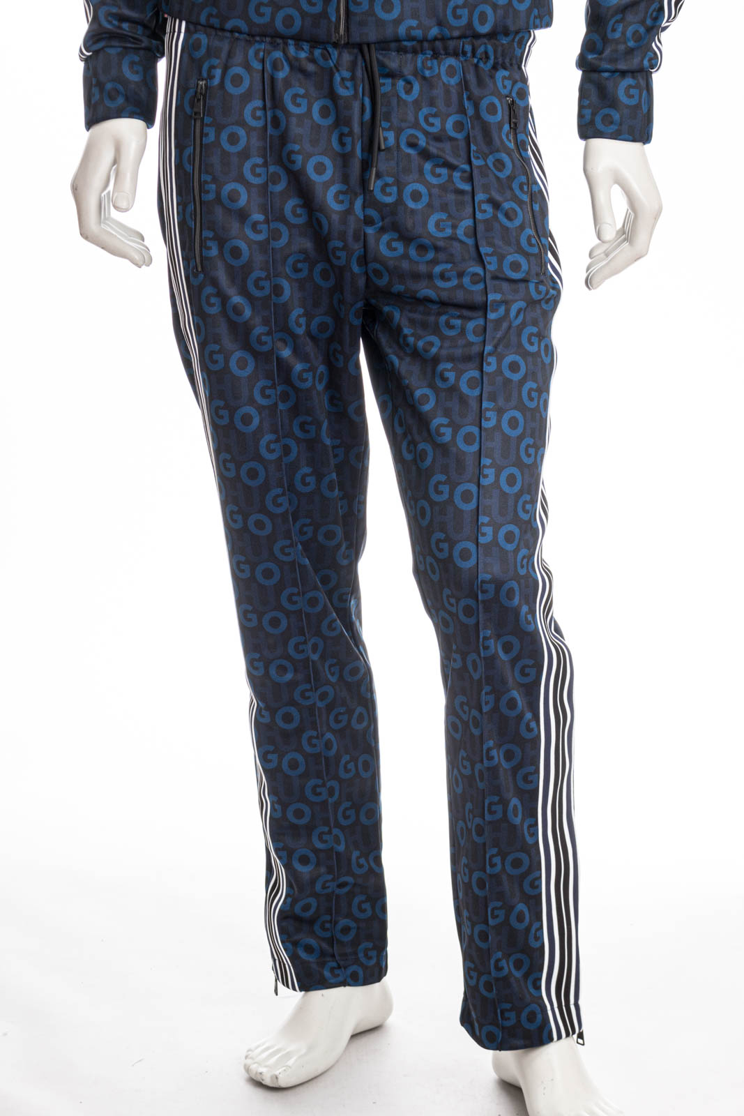 Locker geschnittene HUGO Jogginghose aus Jersey mit Monogramm-Print, ReiĂźverschlĂĽssen am Saum und gestreiften Tapes.