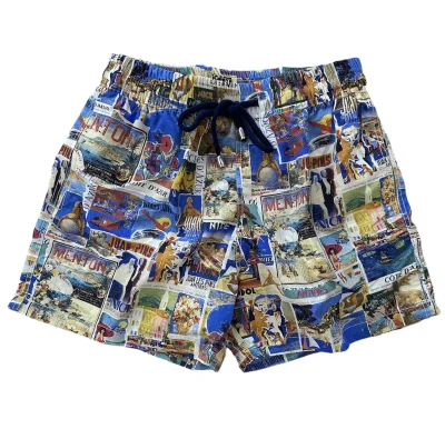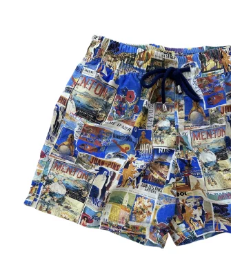 Die Badehose mit geradem Bein und mittlerer Länge mit Vintage-Poster-Print der Côte d''''Azur ist nicht nur stylish, sondern auch funktional. Das leichtgewichtige Material und der bequeme Schnitt machen sie zum idealen Begleiter für einen Tag am Strand oder am Pool.