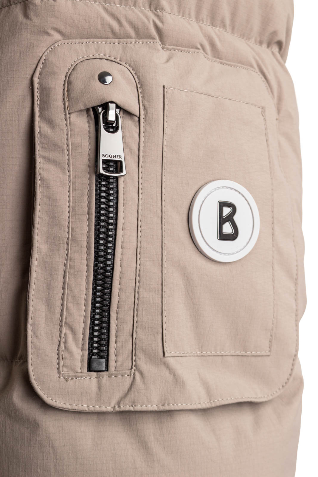 Im gesteppten Ripstop-Design mit abnehmbarer Kapuze und Zwei-Wege-Zipper überzeugt die wasserdichte Daunenjacke Jamy als komfortabler Allrounder, ergänzt durch seitliche Taschen und den justierbaren Saumabschluss. Typische Labeldetails akzentuieren das B-Jacket.