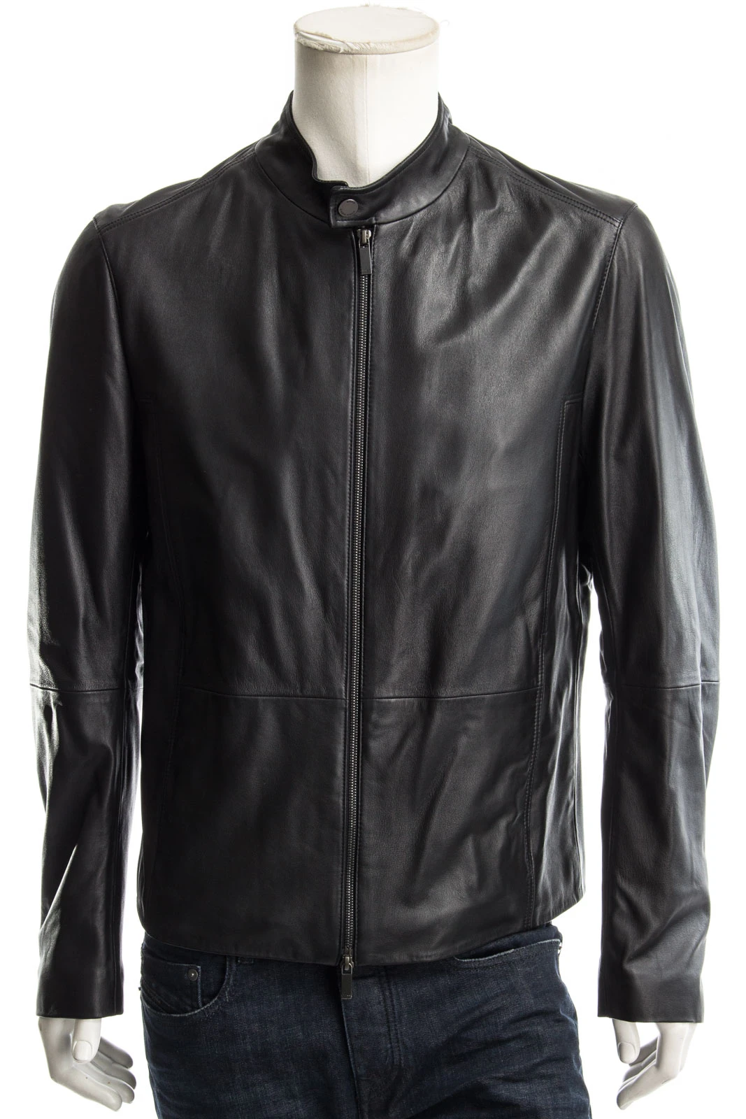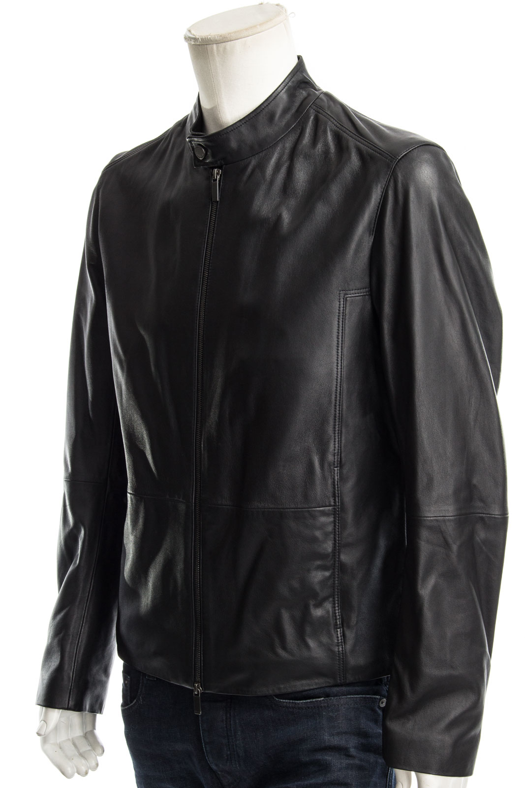 Klassische Lederjacke aus besonders weichem Leder mit Stehkragen.